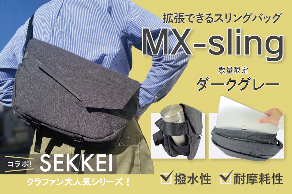 ノートPCも収納できて、容量の拡張可能。大好評スリングバッグMX-Sling