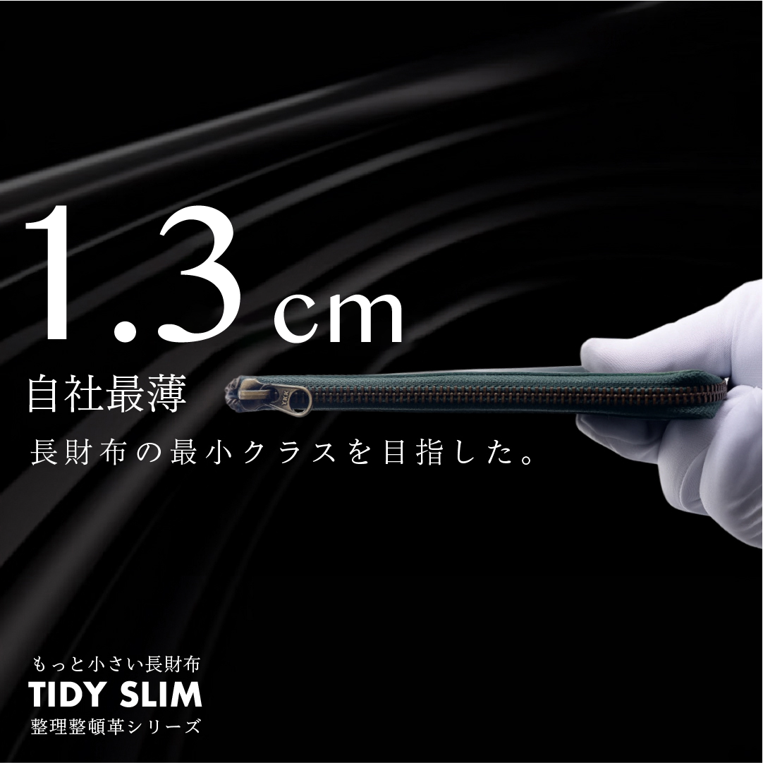 長財布を、薄さ1.3cmで再定義する。最小と最薄を極めた、【TIDY SLIM】