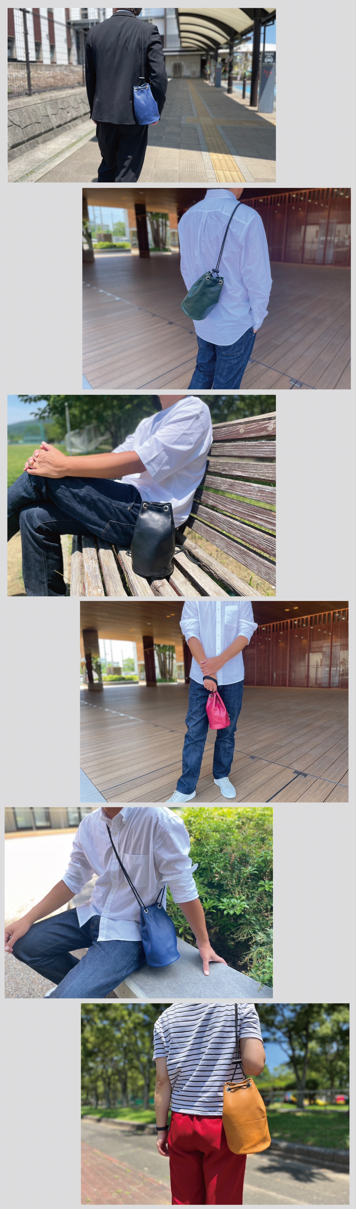 カジュアル感もありつつも、本革ならではの上品さと高級感を感じさせてくれる「本革巾着バッグ」は、大人のデイリーに嬉しく、どんな装いにもマッチしてくれます。