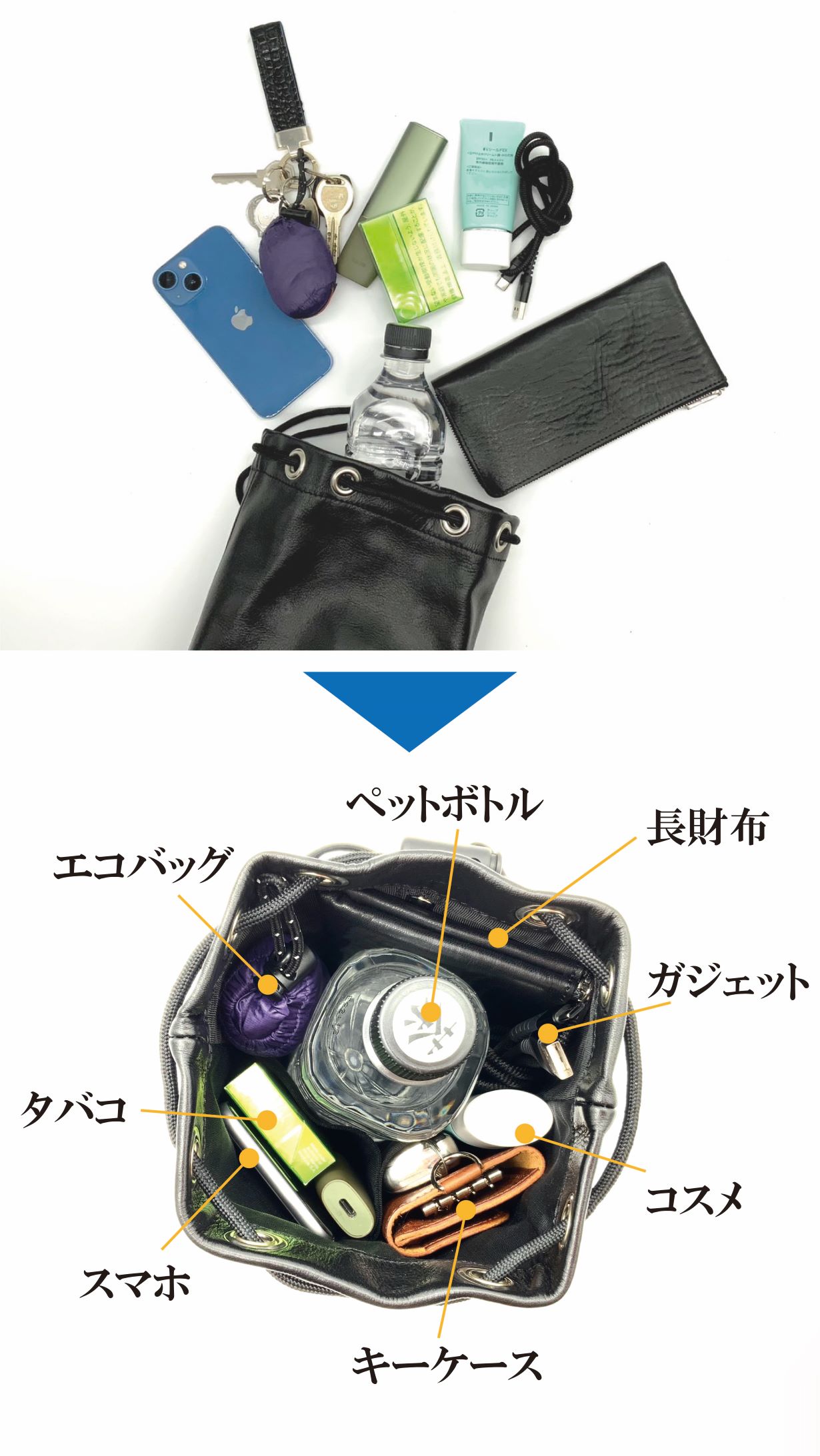 長財布やペットボトルなど高さがあるものをしっかり収納可能!