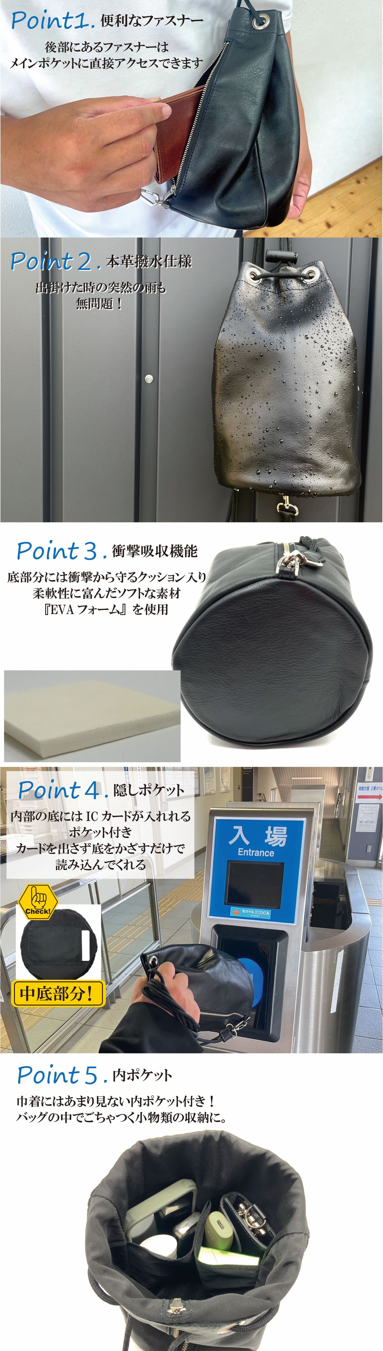 そのご要望にお応えして、今回は長財布が入るサイズに『本革巾着バッグ』をリニューアルしました!