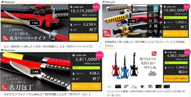 ニッケン刃物は、クラウドファンディングを通じて数々の商品化プロジェクトを実施してきました。初挑戦の日本刀型ペーパーナイフのプロジェクトでは、想像以上の反響があり、刀鍛冶の町である関の刃物を新しいカタチで広くPRする事ができました。
