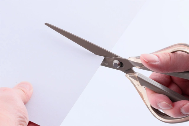 刃体にフッ素コートを塗布しているため、テープなどの粘着物を切っても、刃体がべたつきにくくなっております。