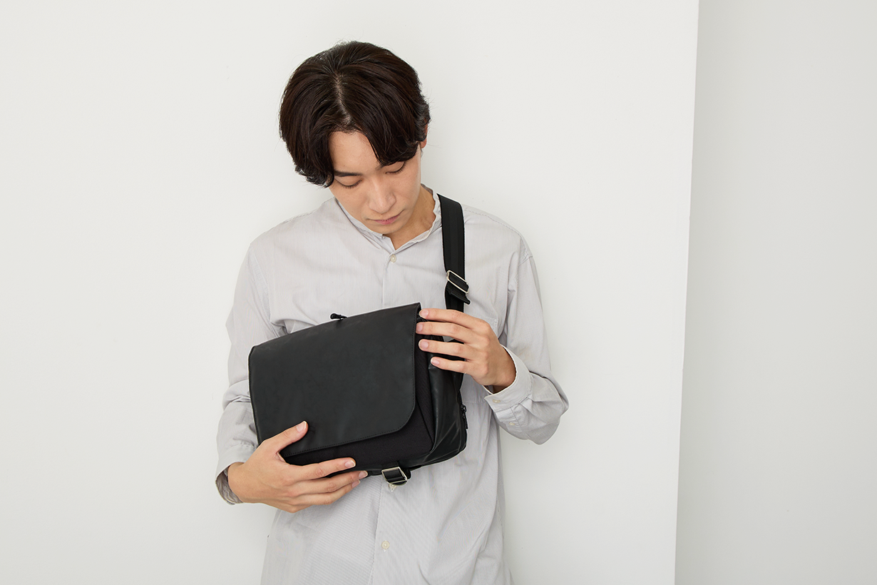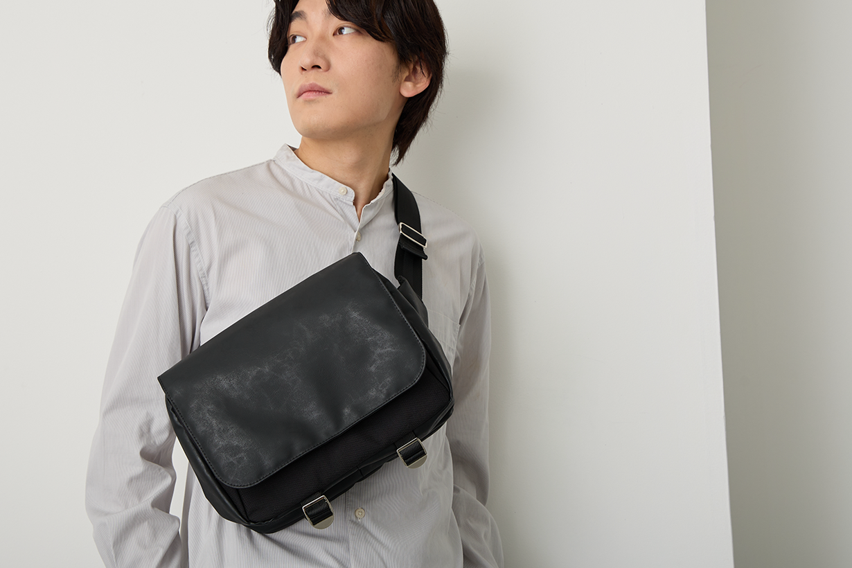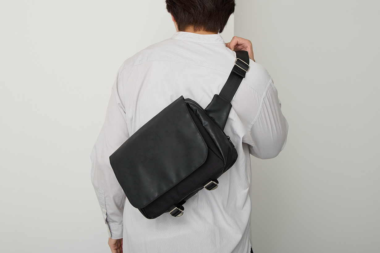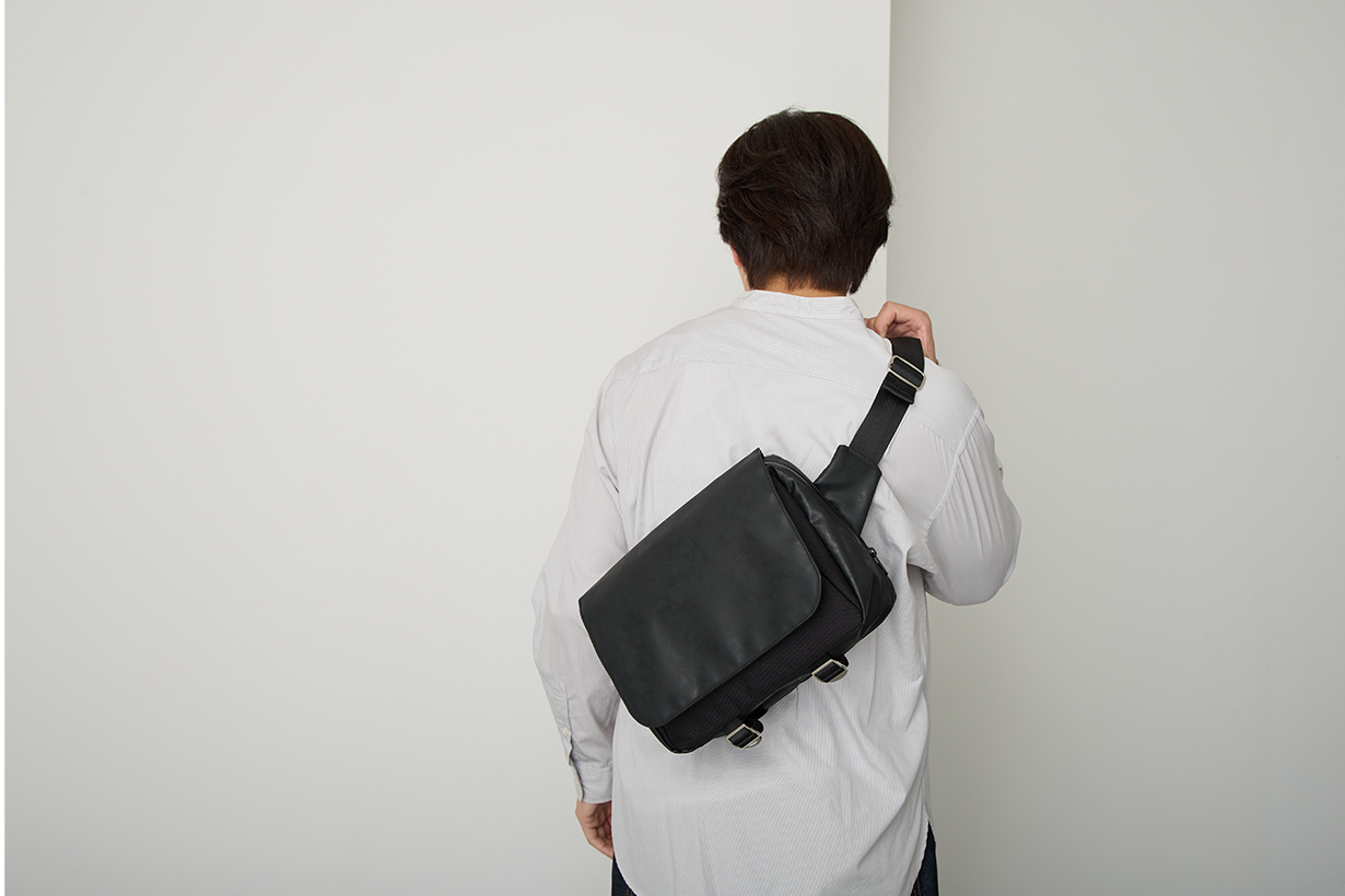 高い耐久性と、高耐久生地に施したアンティーク加工による長く持続する高級感が備わったスリングバッグが、皆さまの毎日の相棒になってくれることを願っています。