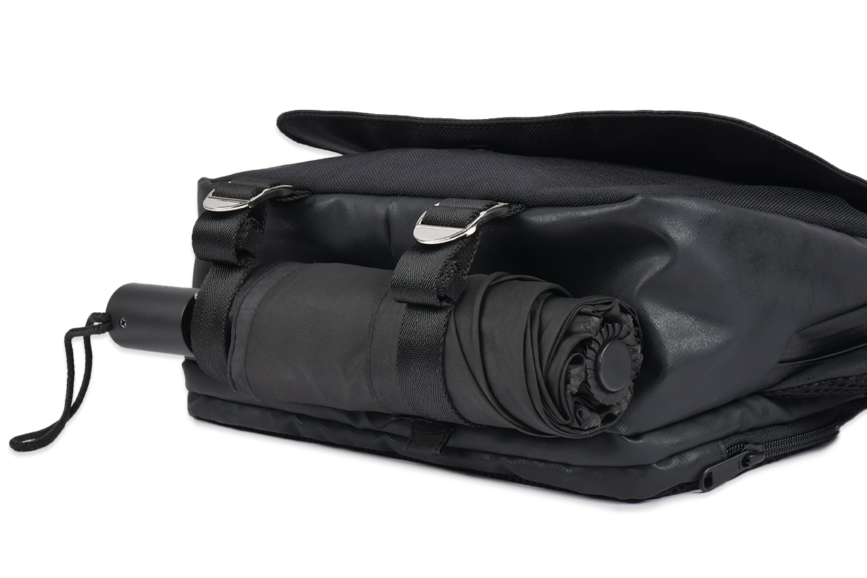 拡張用の底マチのベルト部分には、三脚や折り畳み傘を固定することができます。