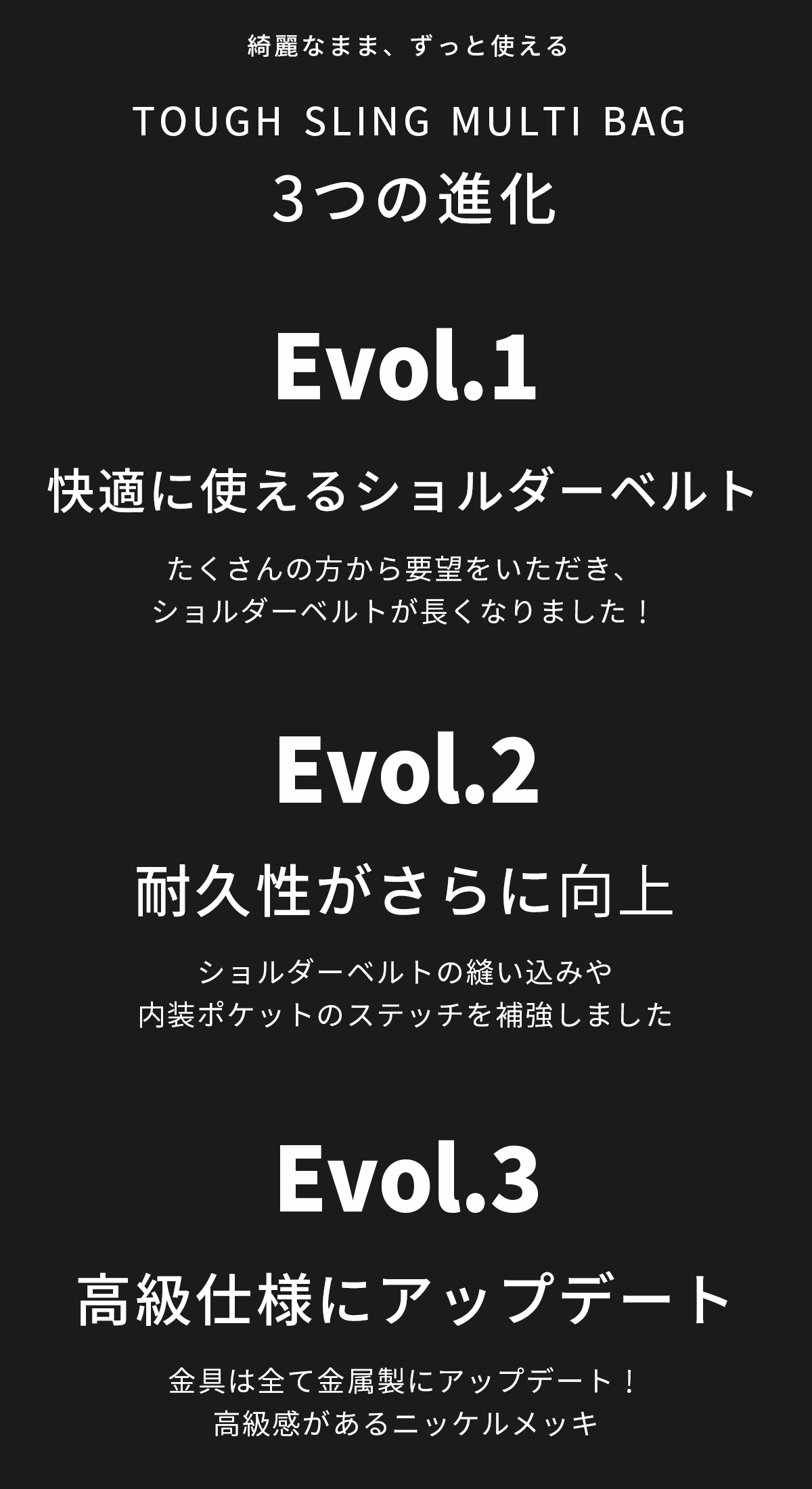 TOUGH SLING MULTI BAGはこれまで1,300名以上の方に購入していただきましたが、たくさんの方に使っていただいた分、改良が必要な箇所が見えてきました。