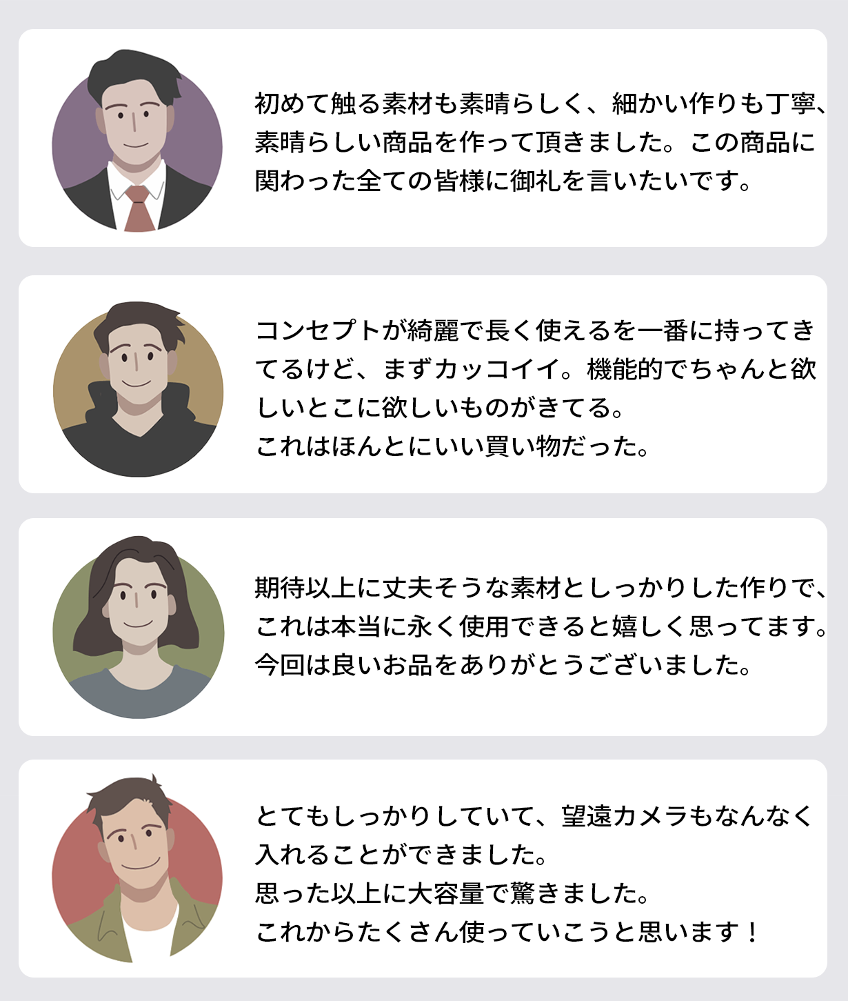 クラウドファンディング、公式ストアともに購入して頂いたユーザーさまからとても高い評価を頂いております!