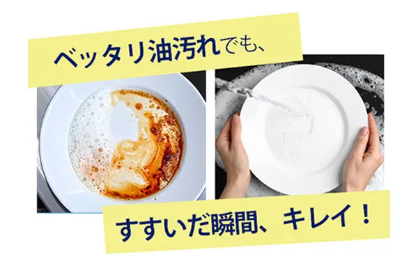 ※油がたくさん付いた食器類を洗う際は、洗浄の前に、新聞紙や布で、油を拭き取ることがおすすめです(拭き取らなくても十分に洗浄できますが、洗剤の使用量と環境負荷の観点でお勧めしております)