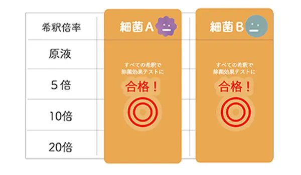 (※一般的な家庭用洗剤にはこのような検査基準は設けられておりませんが、本製品は食品工場など衛生管理が求められる現場でも使用しているため、基準に準じた検査を定期的に実施しております。 また安心してご使用いただけるよう、自主的に除菌試験も行っております)