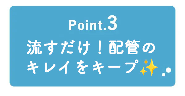 そしてここから流れる水は、排水処理施設の負担を減らし、処理効率アップ。除菌剤配合なので、配管内の菌の繁殖防止が期待できます。