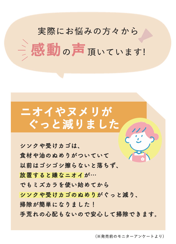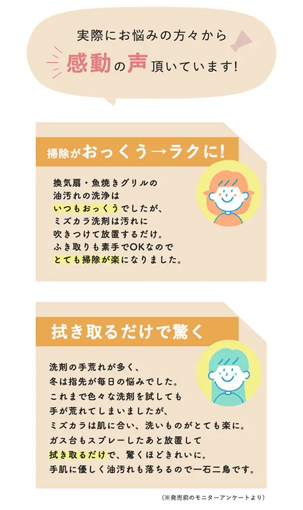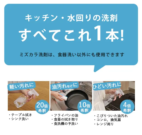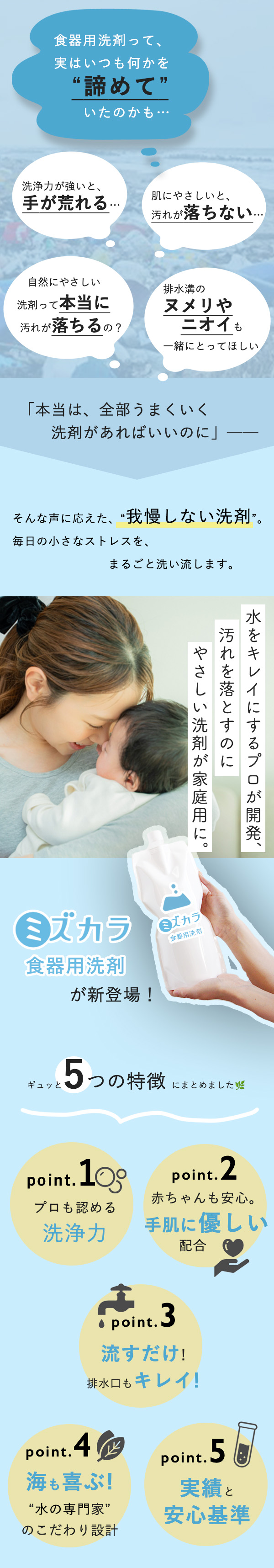 この課題に向き合うことが、本洗剤の原点であり、他にはないミズカラ洗剤の強みです。