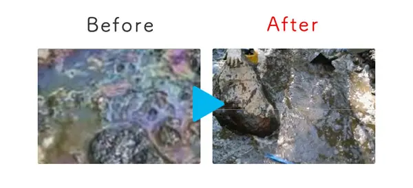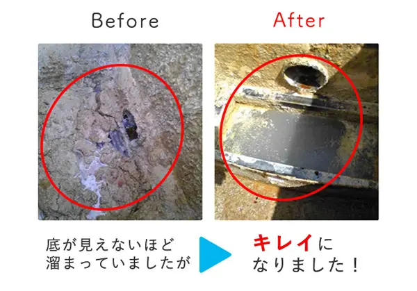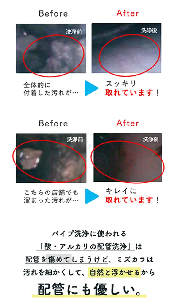 実際の店舗で使用したところ、開始後はグリストラップ(業務用の厨房に設置が義務付けられている部分)や配管内への油脂堆積が軽減しており、清掃業者の清掃も大きく減少しました。