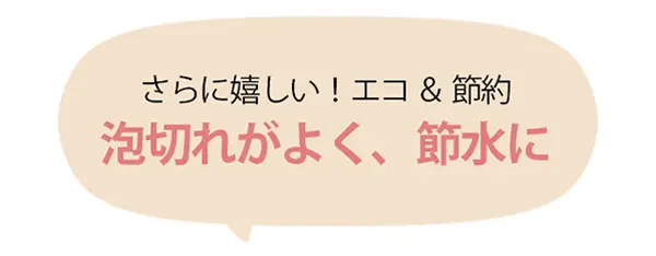 低泡性で、泡切れが良い配合にしているため、すすぎの水を減らせます。