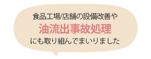 食品工場からの排水水質は、法律で厳しい基準が設けられており、油が排水施設に残留してしまうと、生物による汚水の浄化能力が低くなり、汚れた水が流出する事で海や川が汚れてしまいます。