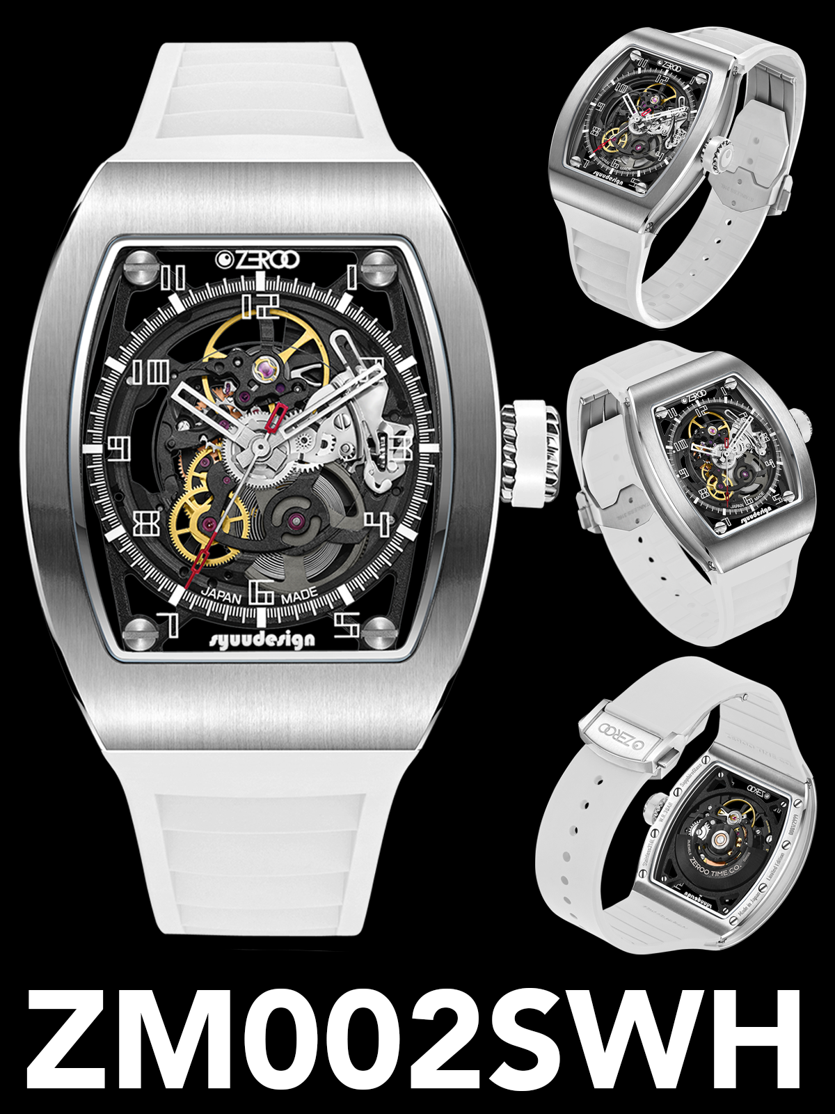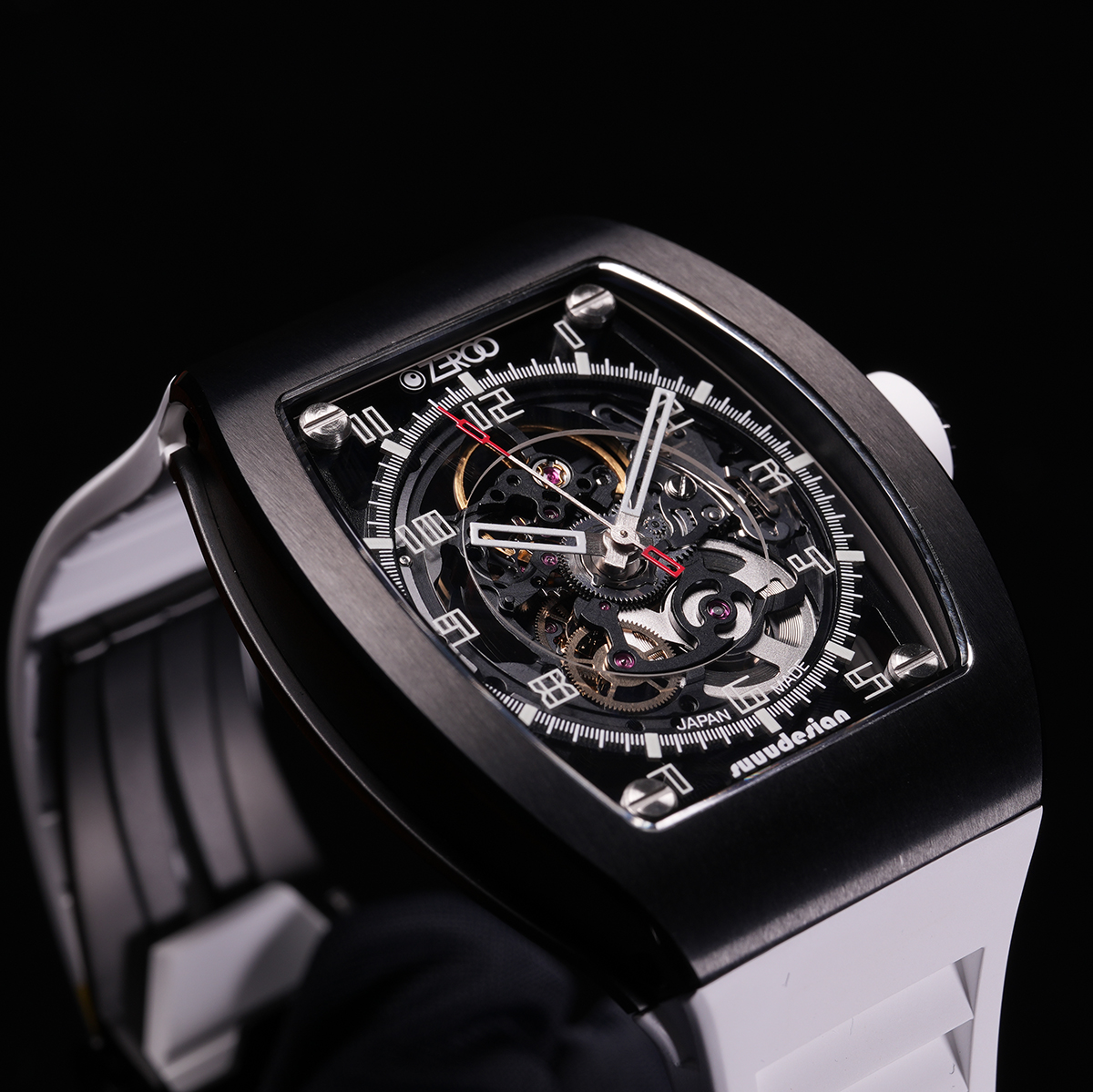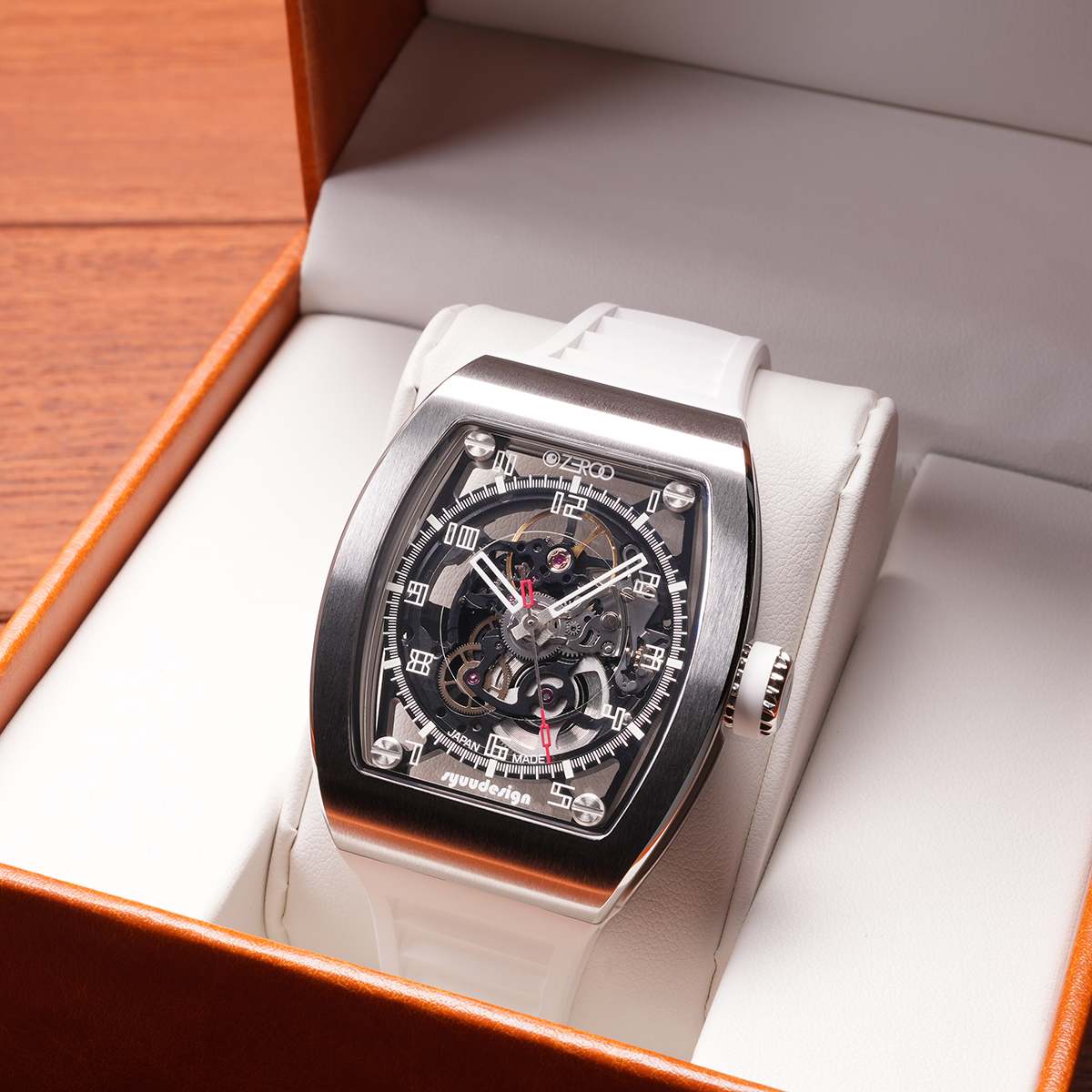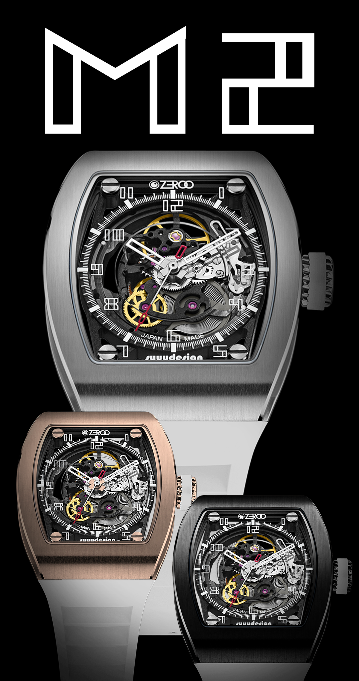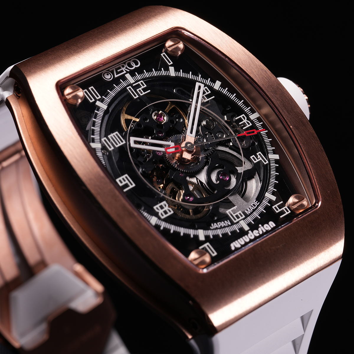 ショーケースのように美しい新設計トノー型ケースの中に繊細なスケルトン機械式自動巻きムーブメントを収めた全く新しいZEROO M2が誕生しました。