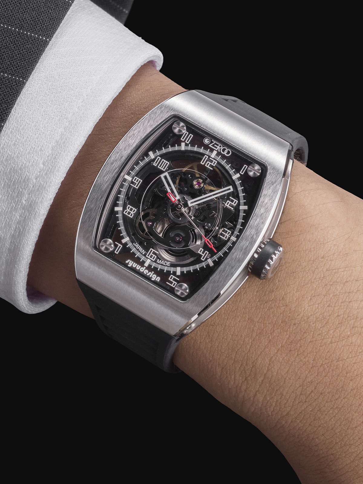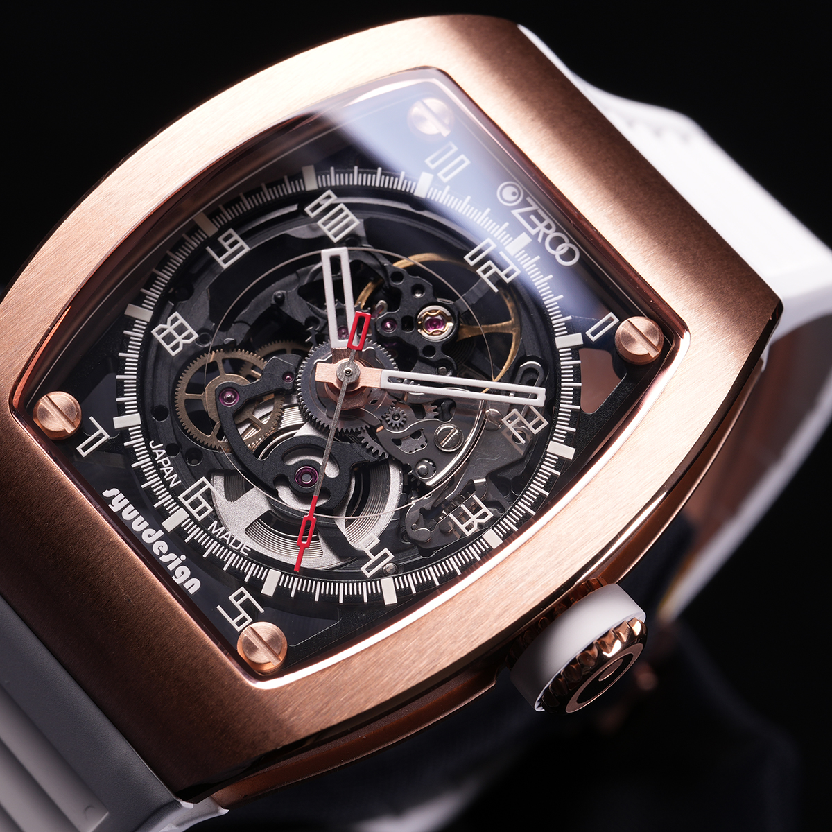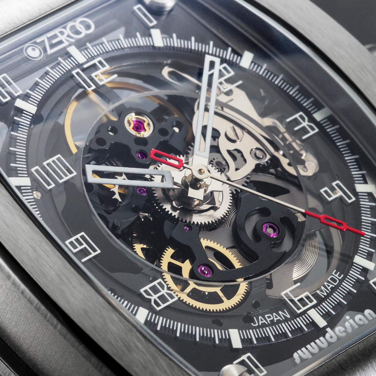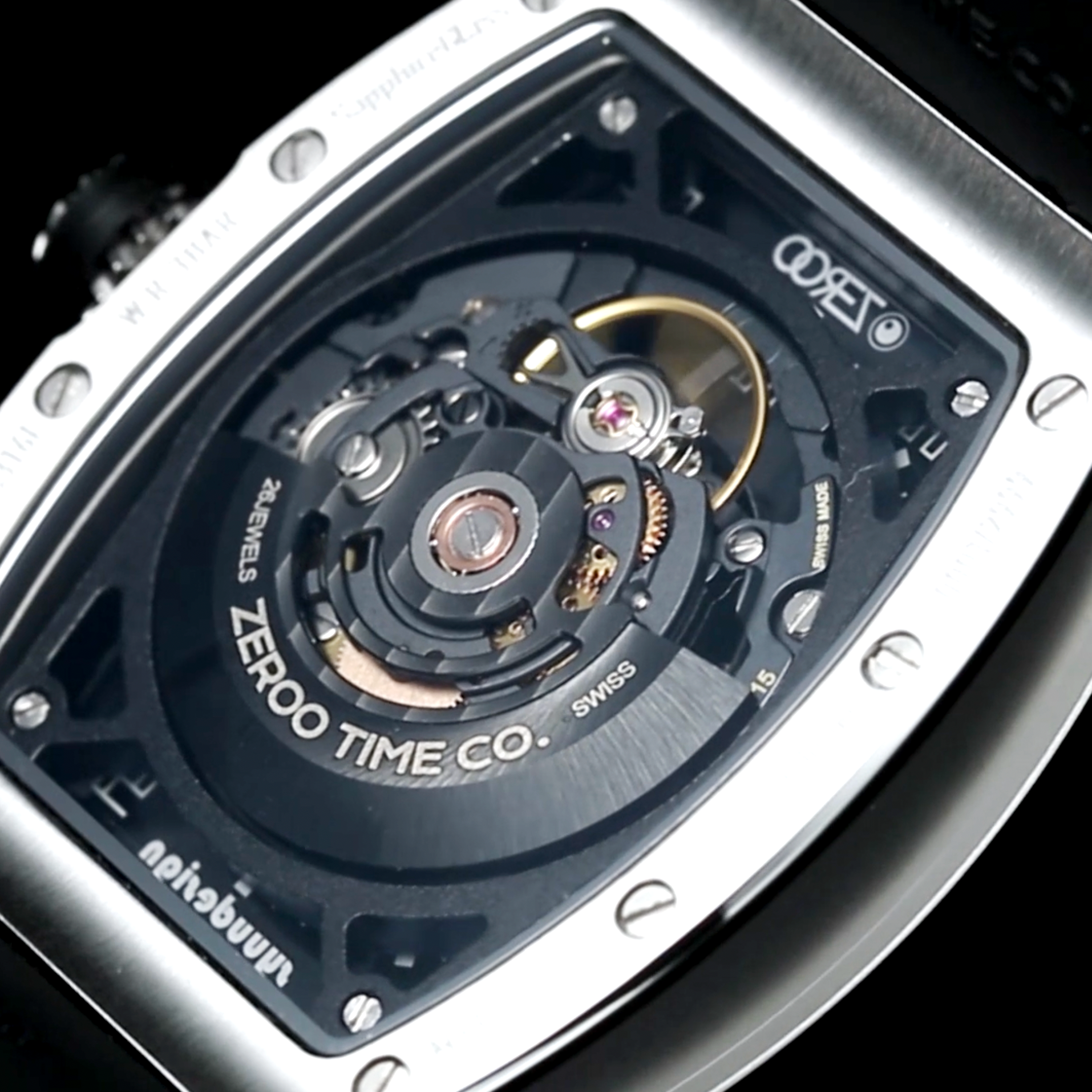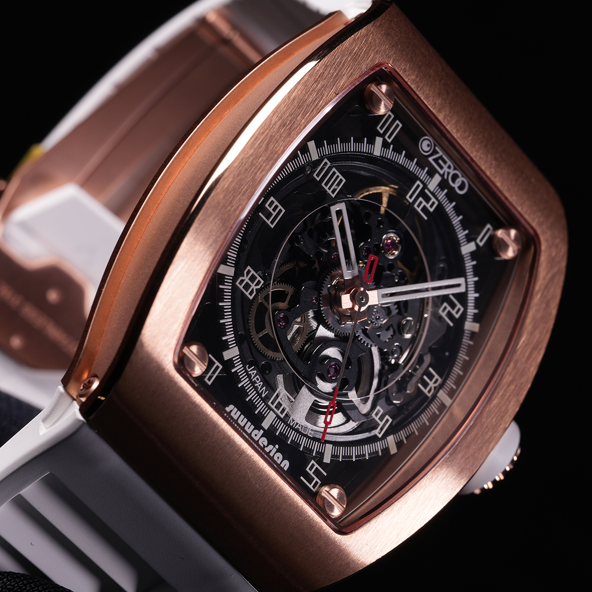 ショーケースのように美しい新設計トノー型ケースの中に繊細なスケルトン機械式自動巻きムーブメントを収めた全く新しいZEROO M2が誕生しました。