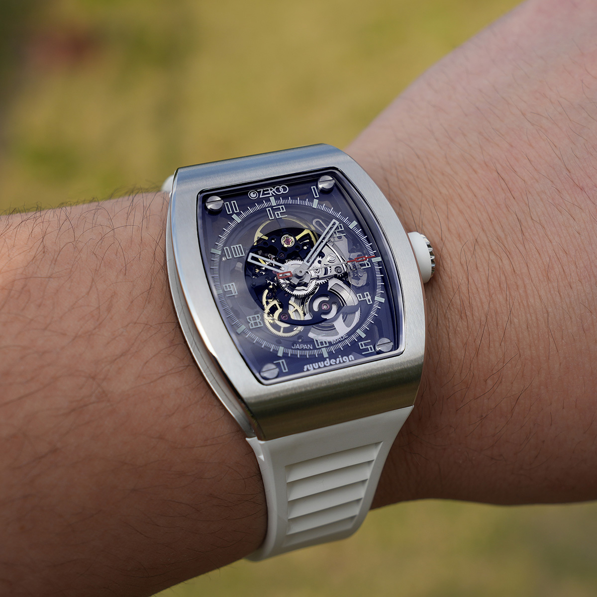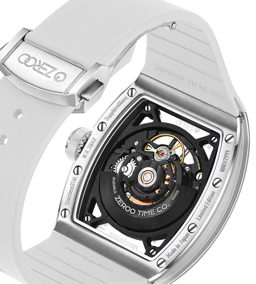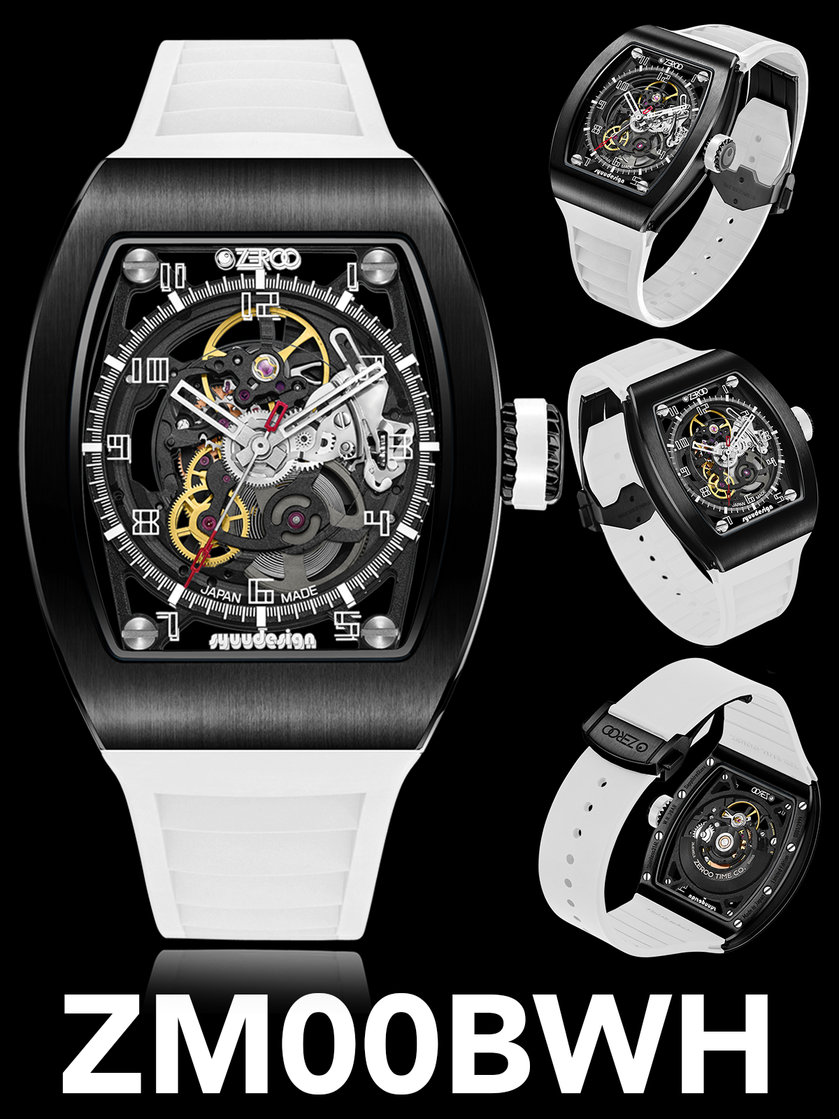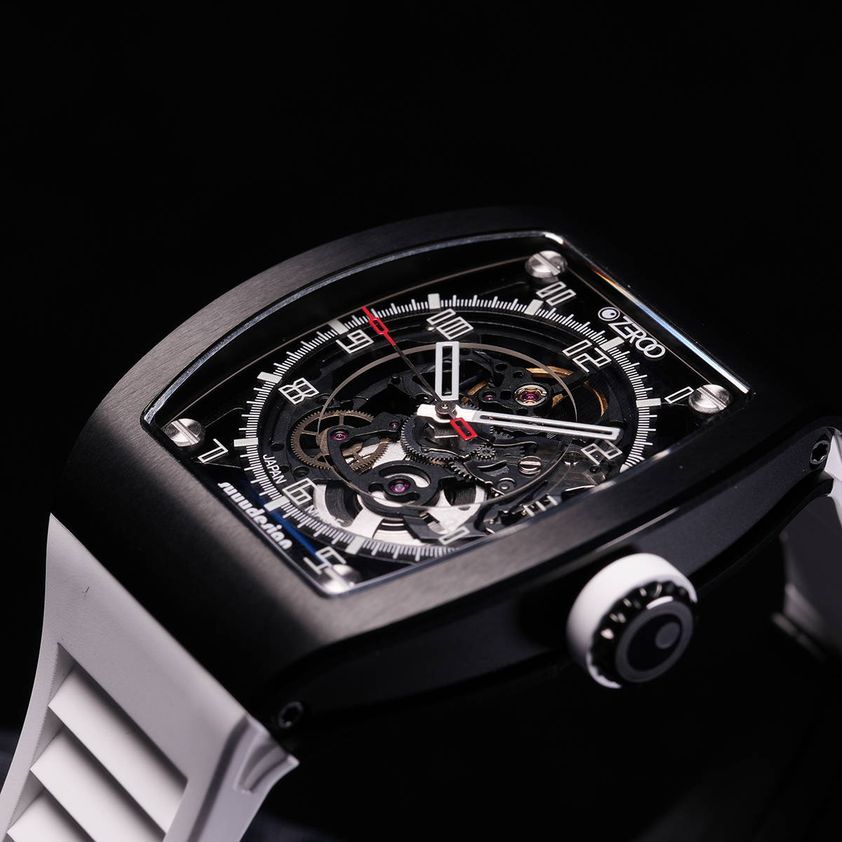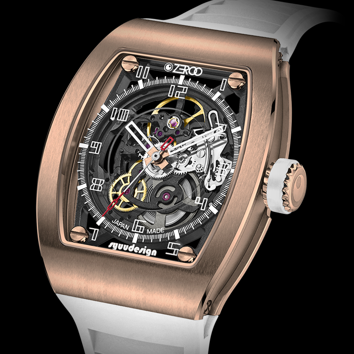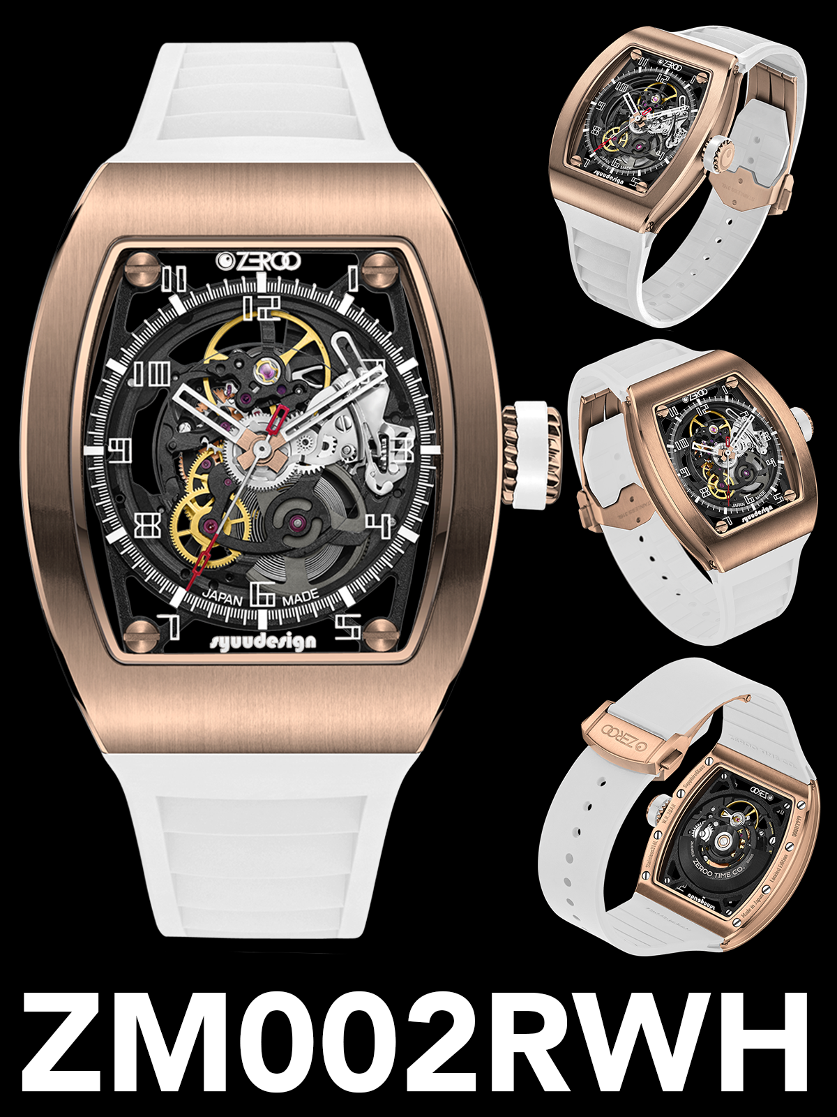 ショーケースのように美しい新設計トノー型ケースの中に繊細なスケルトン機械式自動巻きムーブメントを収めた全く新しいZEROO M2が誕生しました。