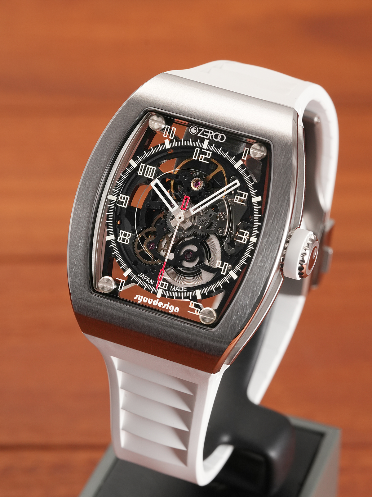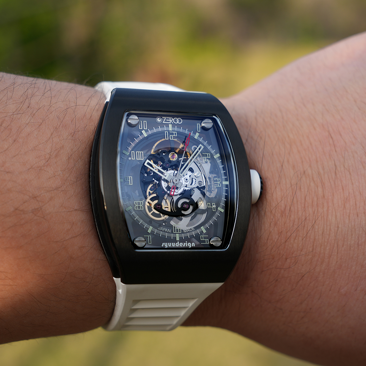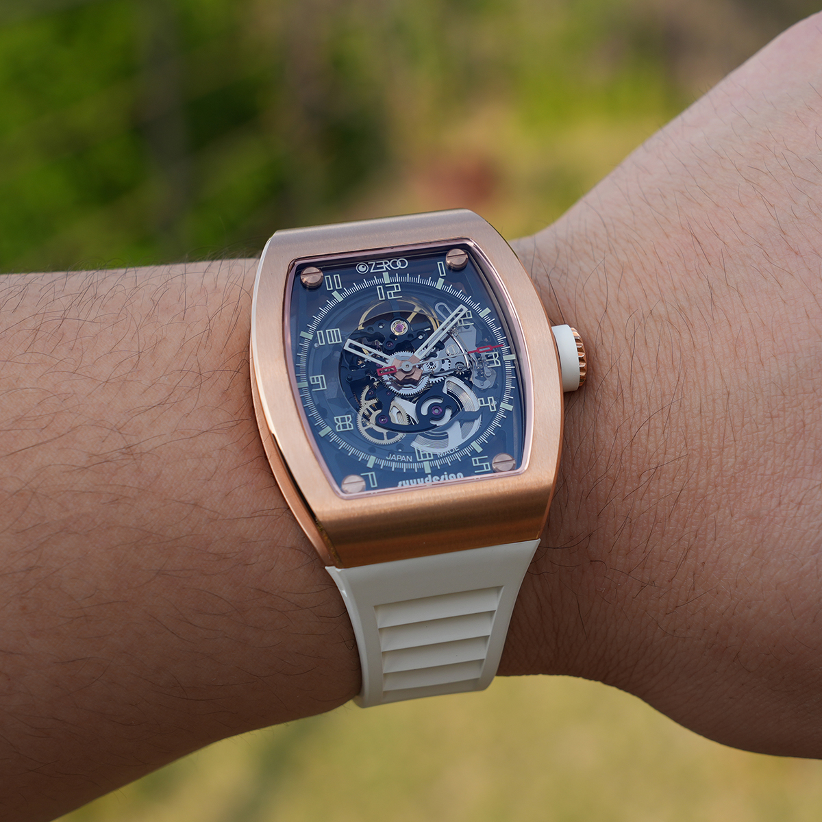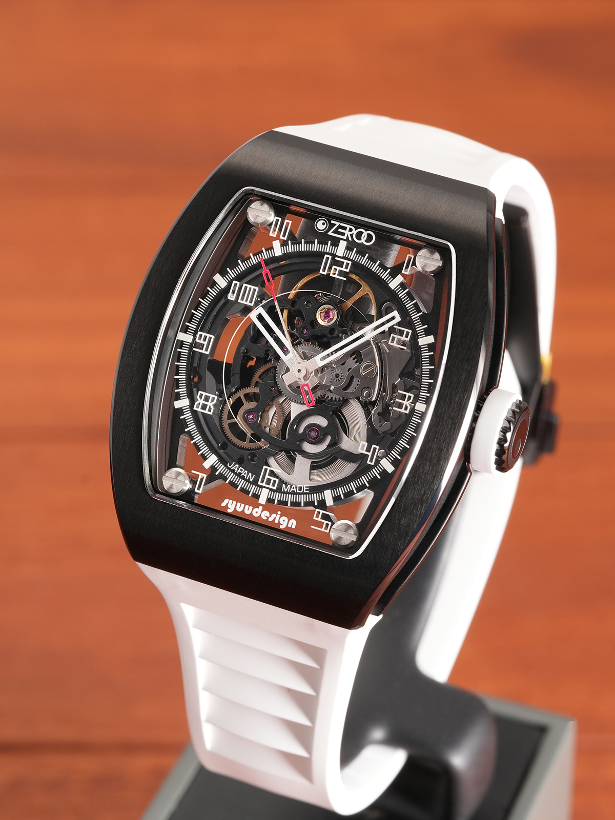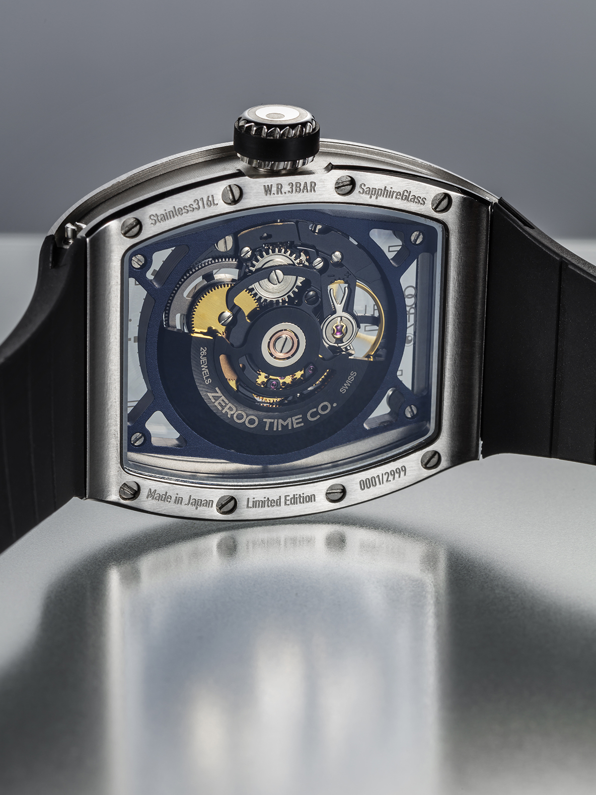 ショーケースのように美しい新設計トノー型ケースの中に繊細なスケルトン機械式自動巻きムーブメントを収めた全く新しいZEROO M2が誕生しました。
