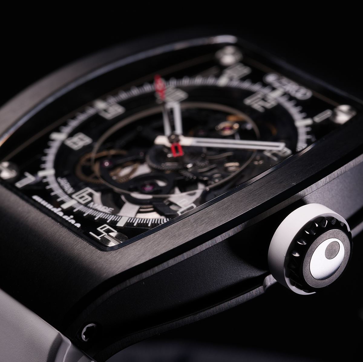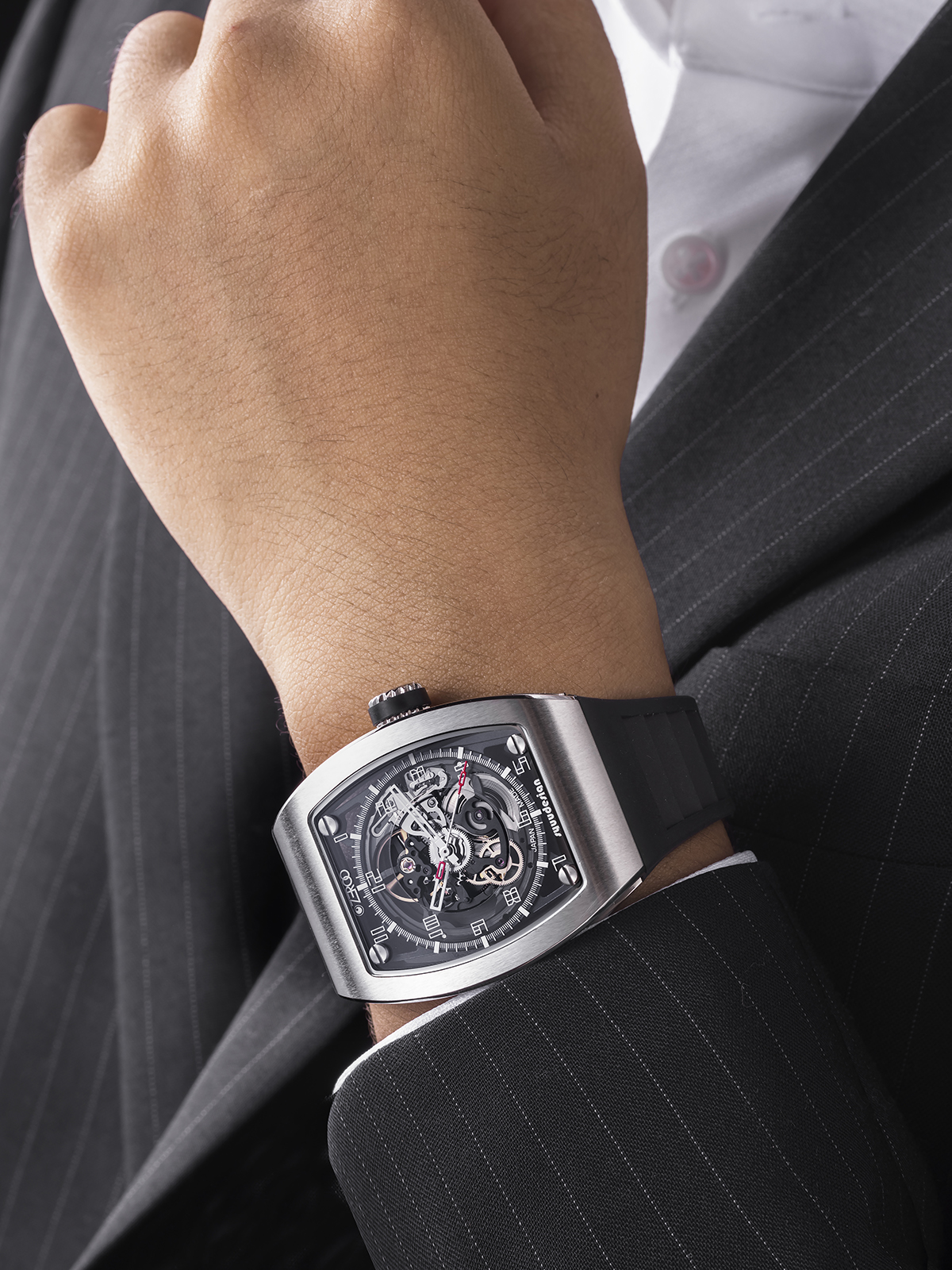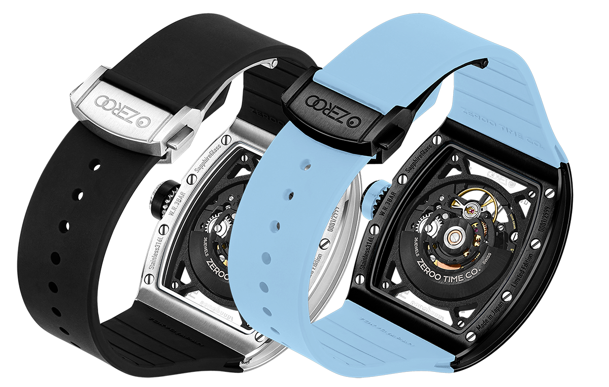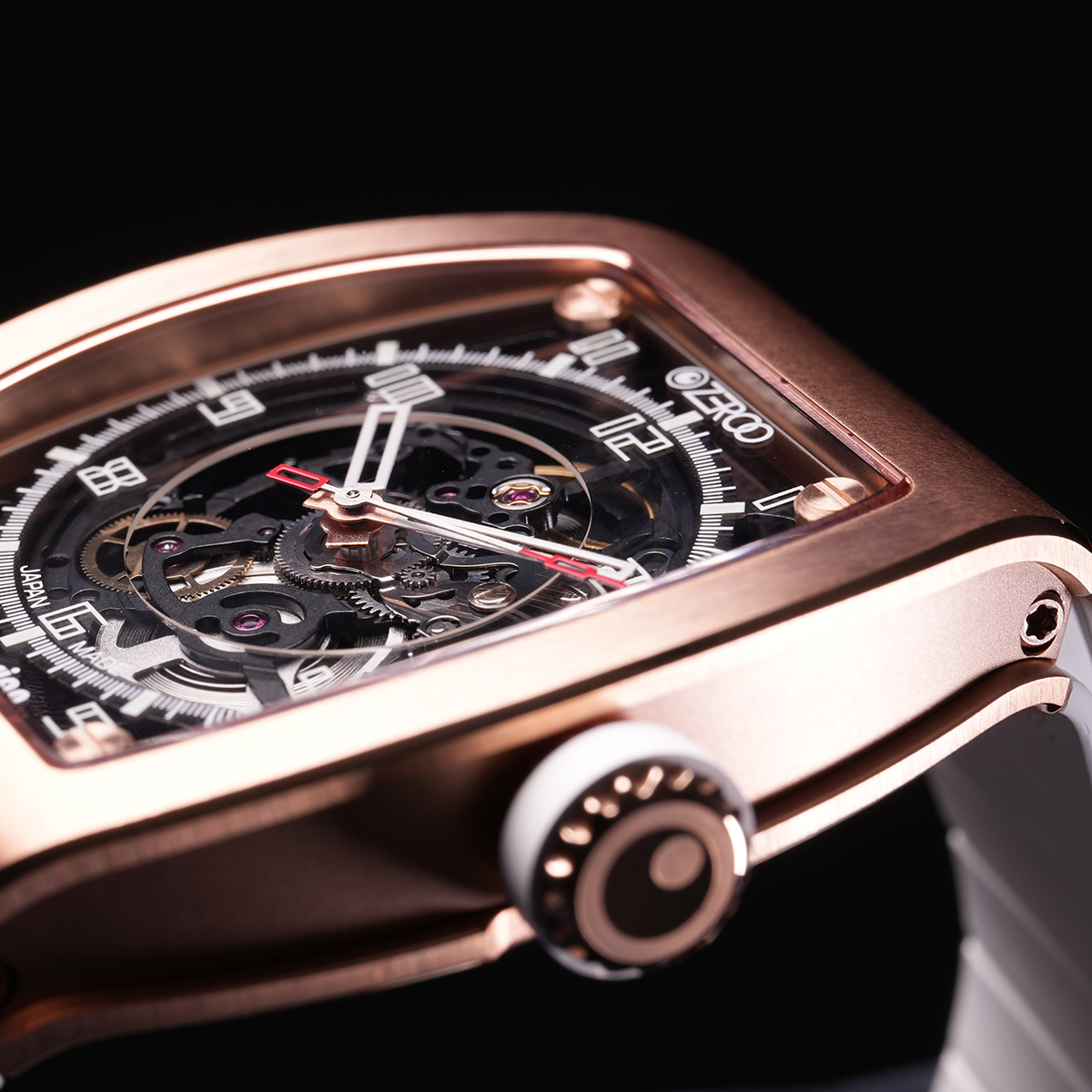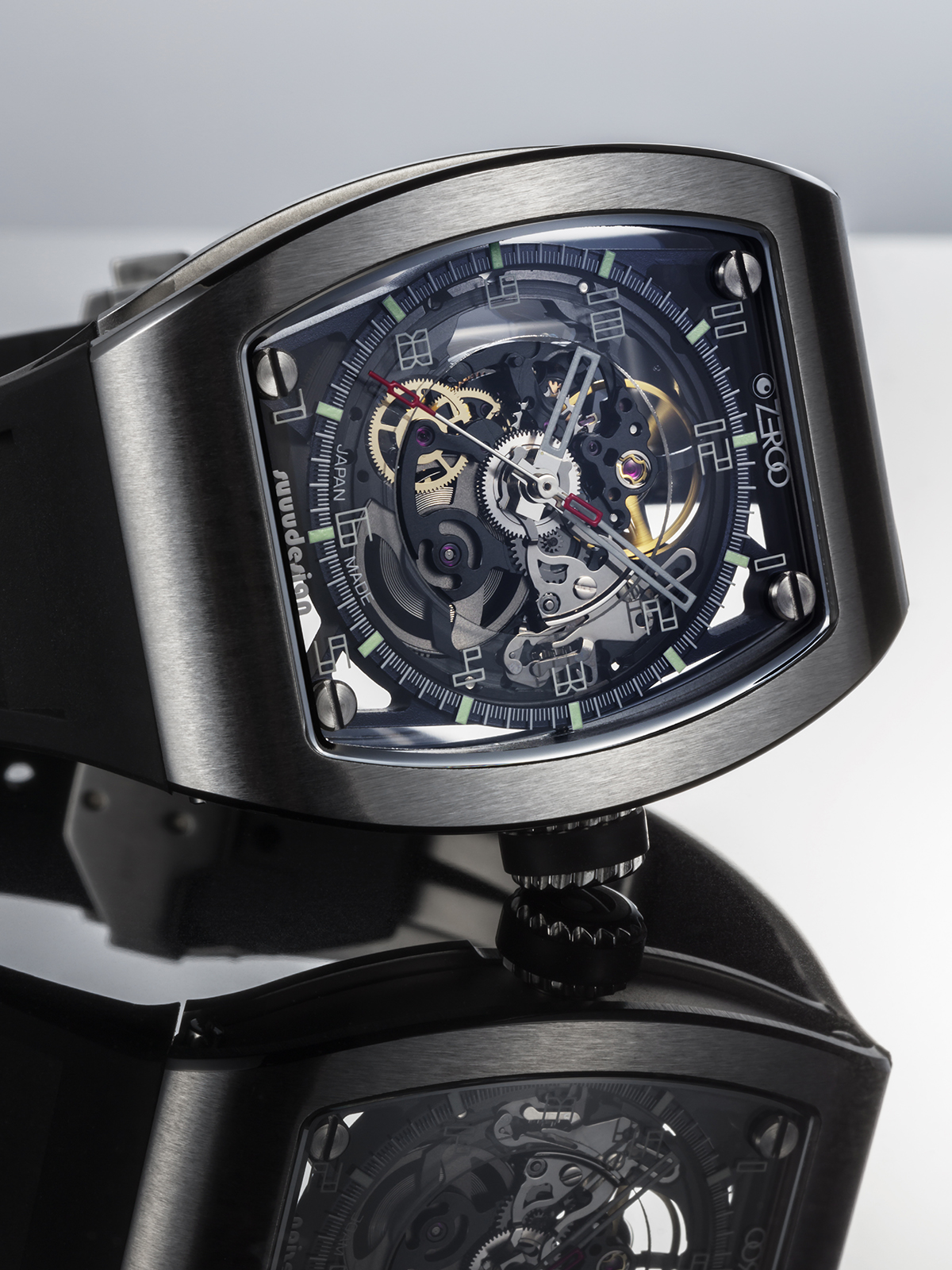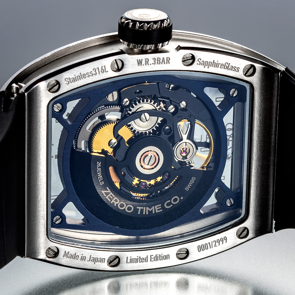 ショーケースのように美しい新設計トノー型ケースの中に繊細なスケルトン機械式自動巻きムーブメントを収めた全く新しいZEROO M2が誕生しました。