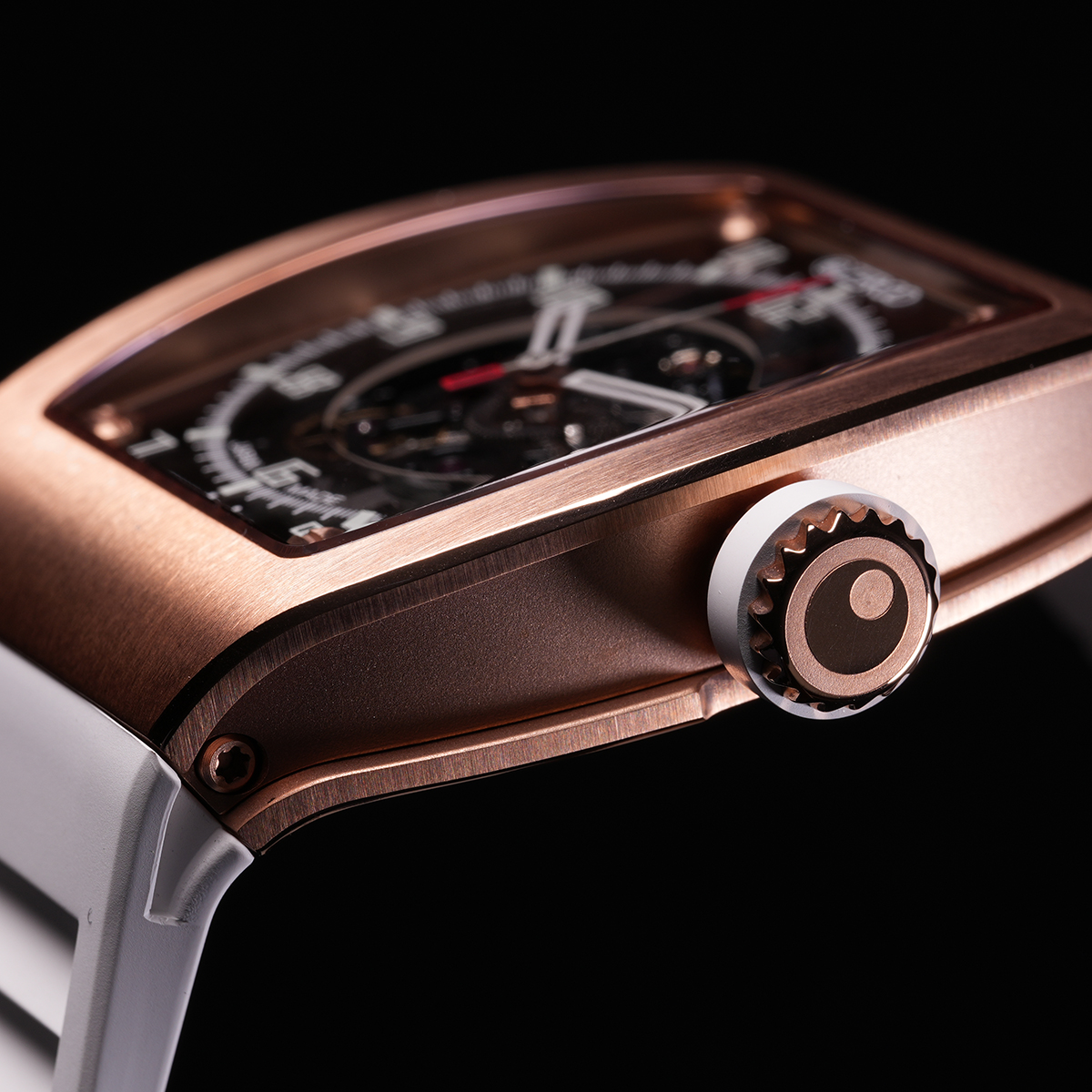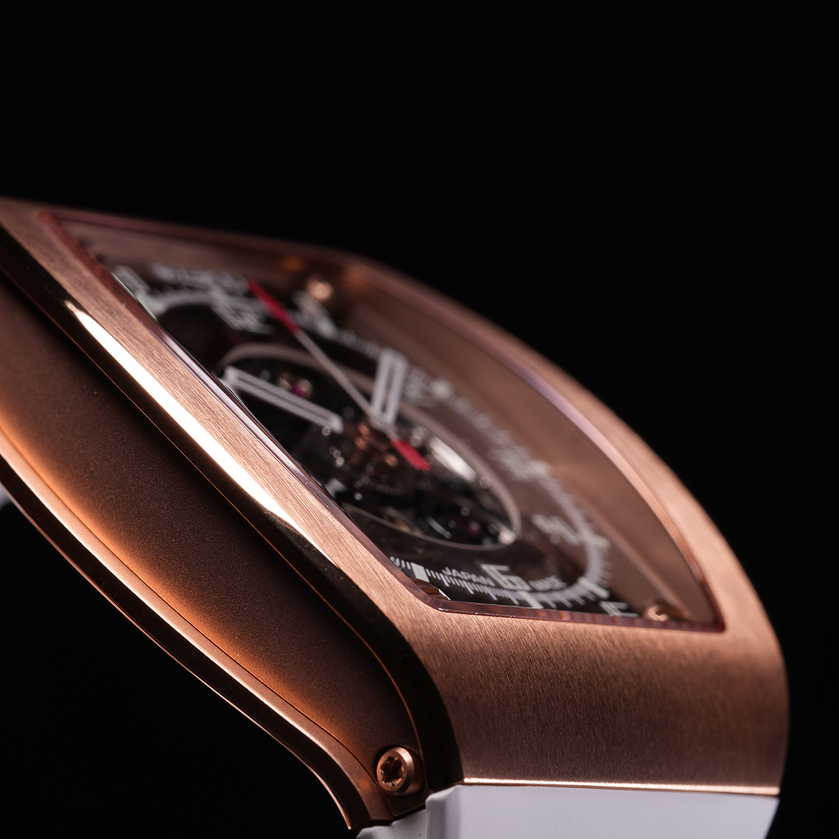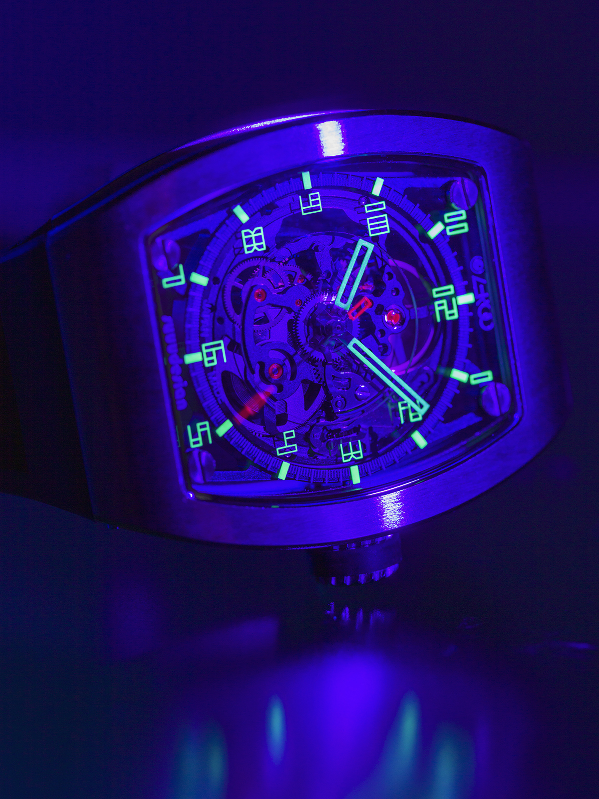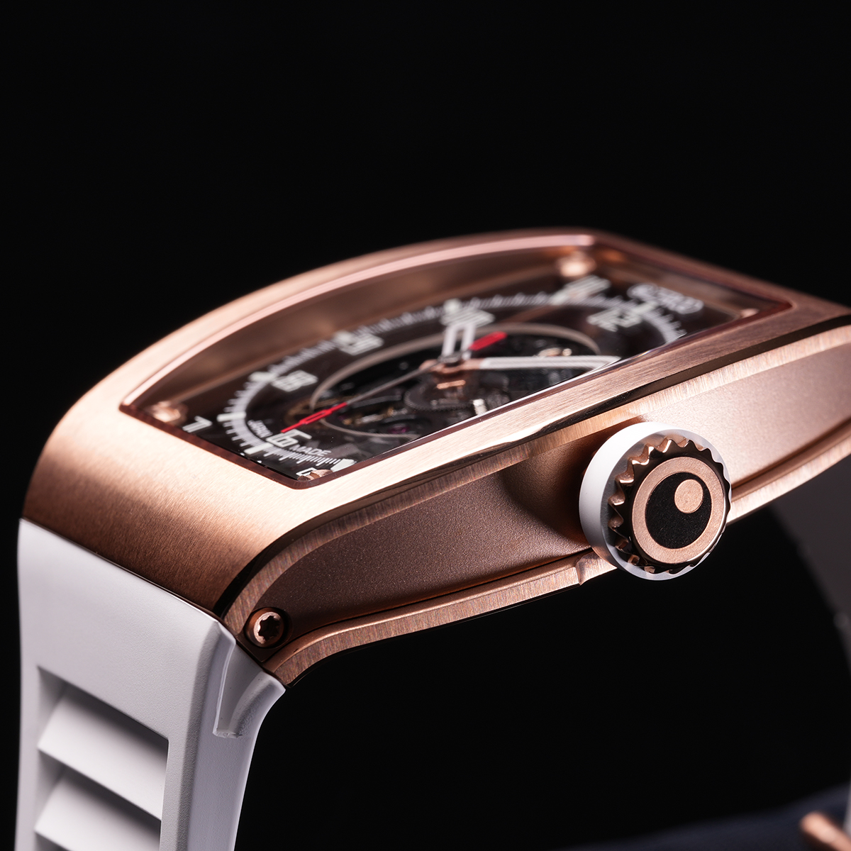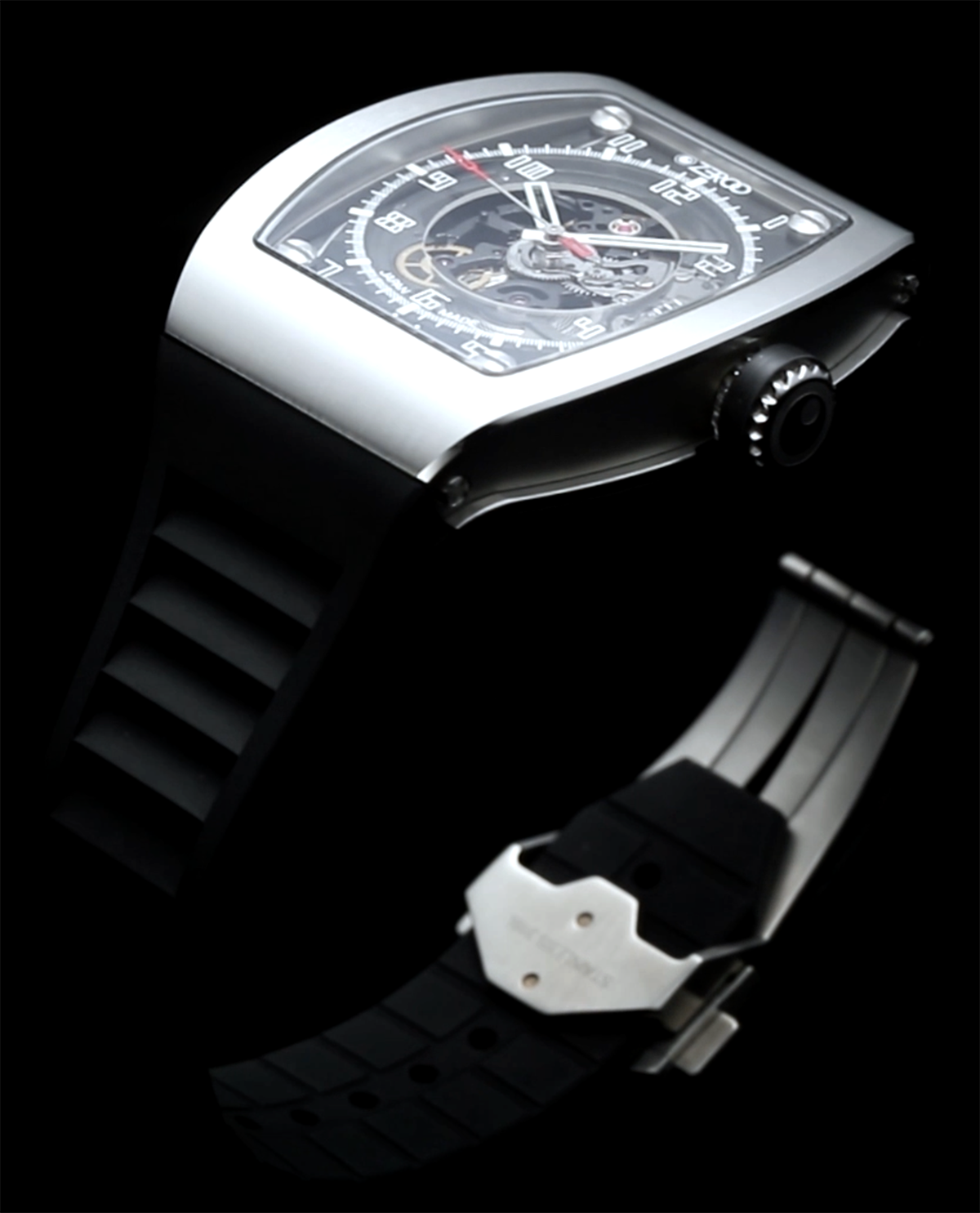 ショーケースのように美しい新設計トノー型ケースの中に繊細なスケルトン機械式自動巻きムーブメントを収めた全く新しいZEROO M2が誕生しました。