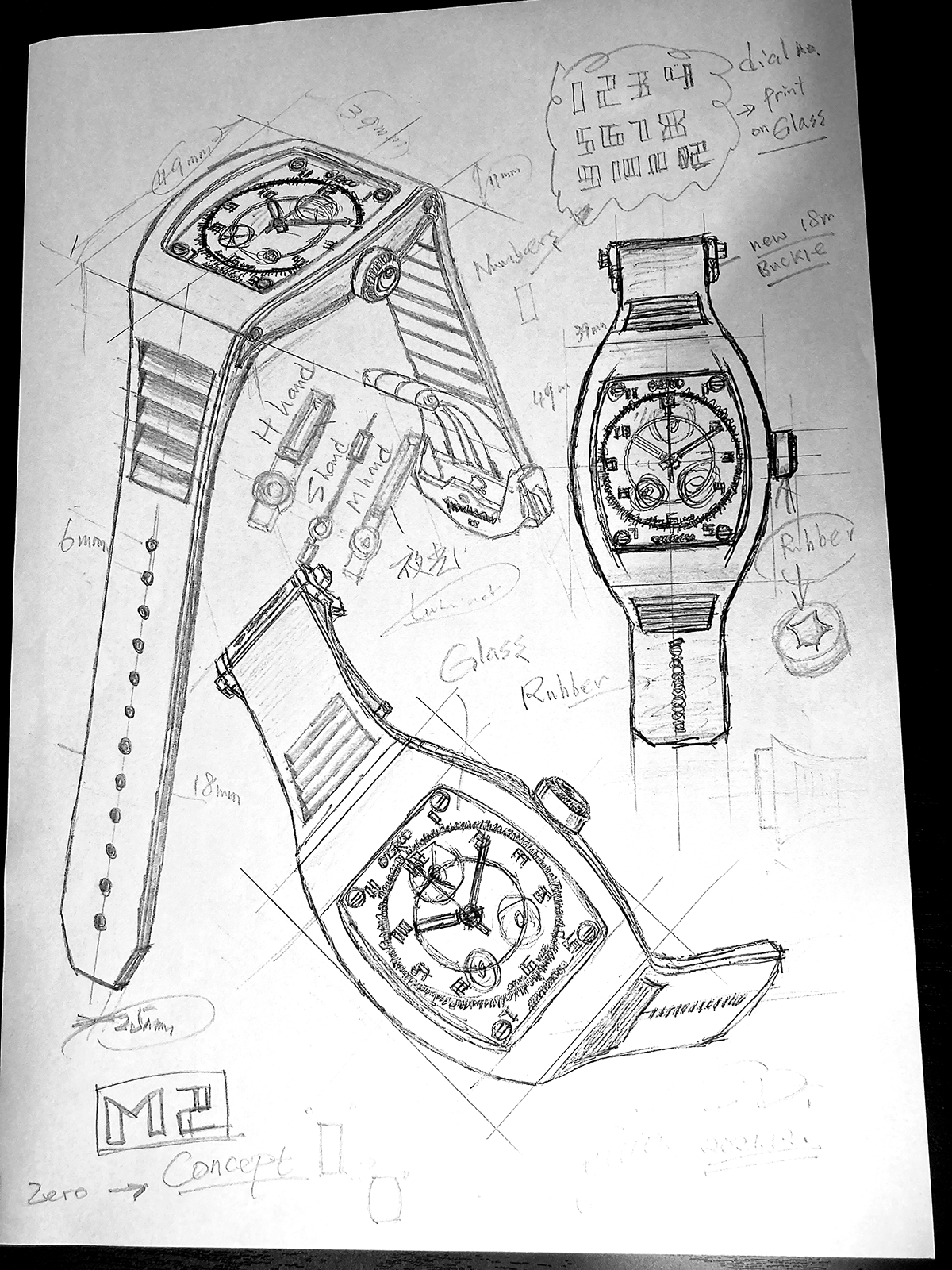 美しく繊細なムーブメントをショーケースのような筐体に格納したMシリーズ第二弾のM2は、"0"をデザインの中心に据えて、全てを新しく設計し直しました。