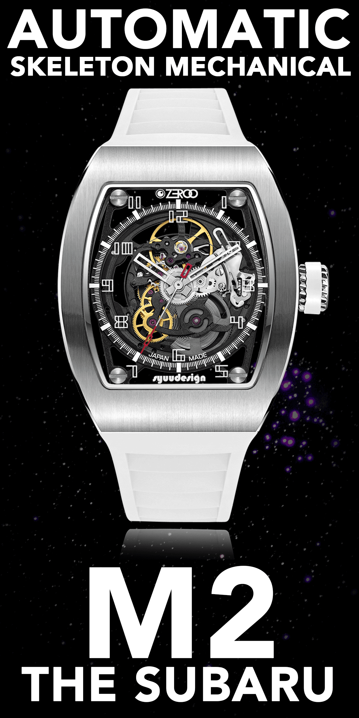 デジタルデバイス全盛の現代において、敢えて古典的とも言える自動巻きムーブメントを搭載した機械式腕時計をモダンデザインに再構築、ZEROO Mシリーズ第二弾のM2 THE SUBARUとして発表します。