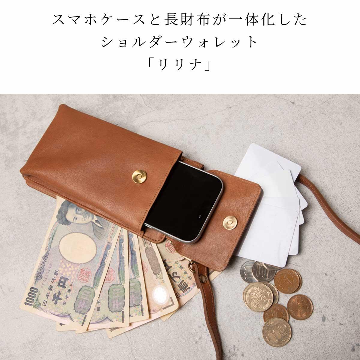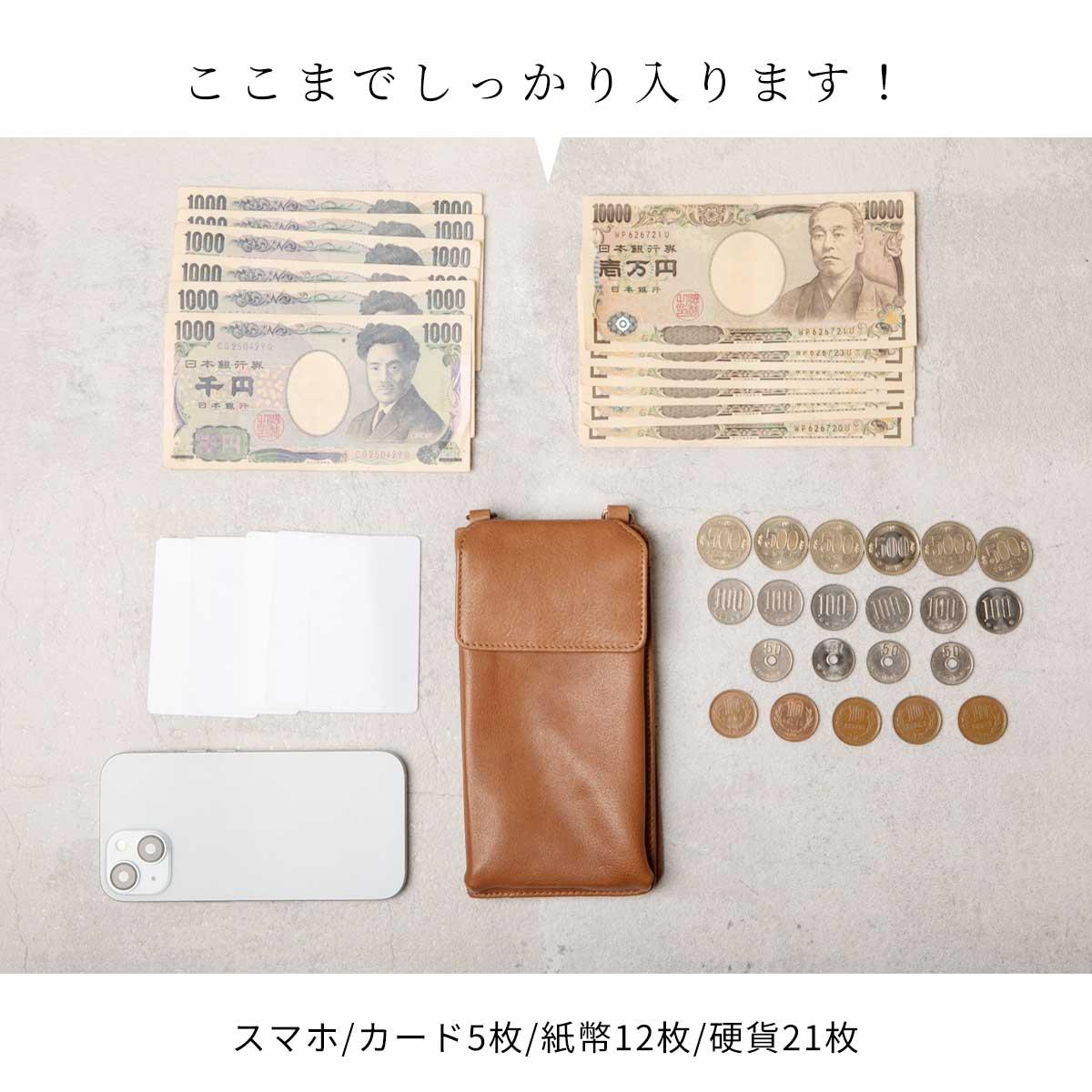 仕様:スマホ収納 / 札入れ1ヶ所 / 小銭入れ1ヶ所 / カードポケット5ヶ所 / フリーポケット2ヶ所 / タッチ決済用ポケット1ヶ所