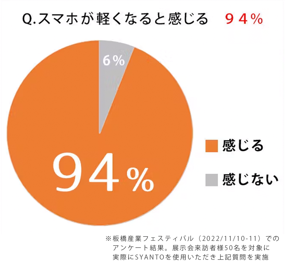 さらに、余計な力から手が解放されることで、スマホが軽く感じるという驚きの体験を、多くの方に体感いただいております。