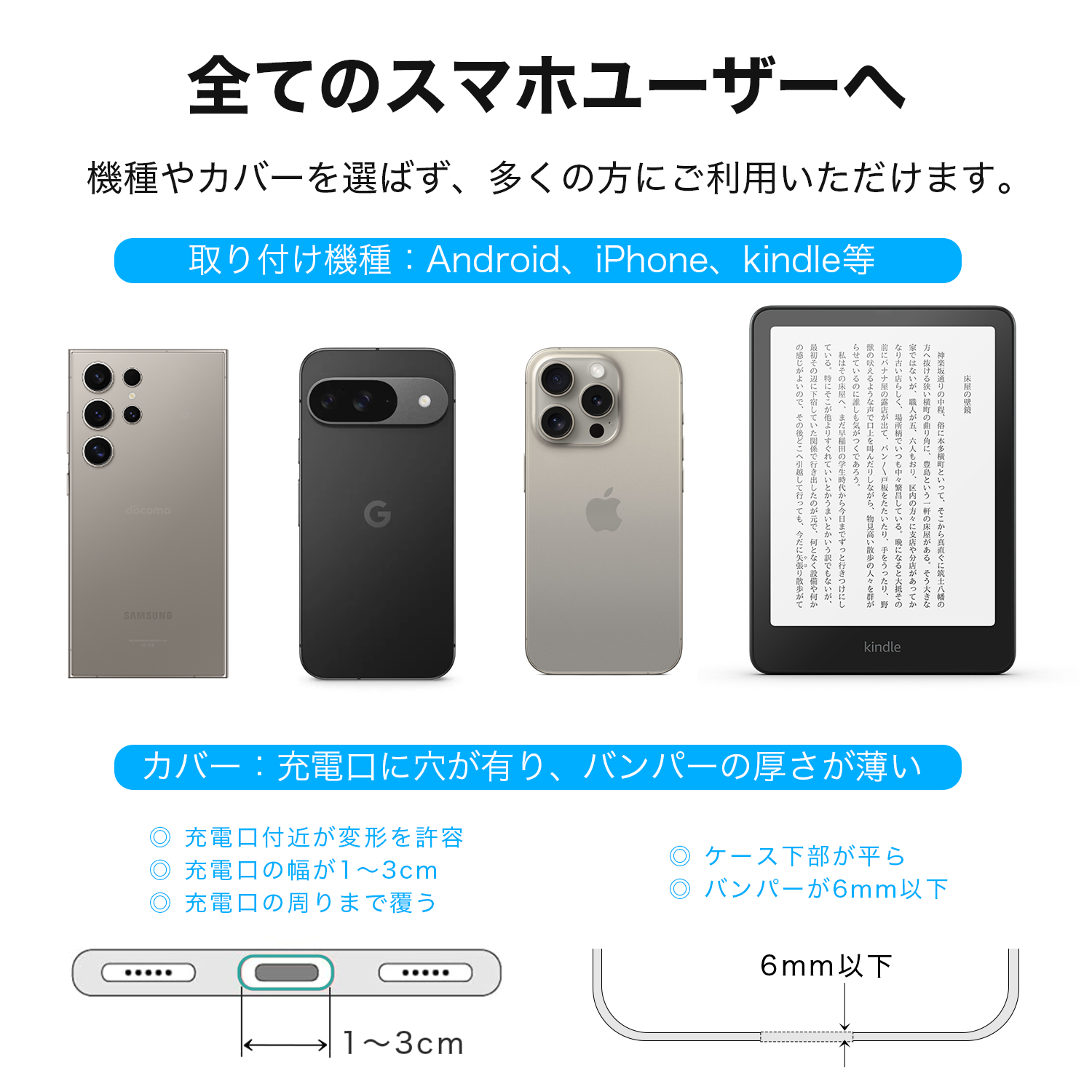 SYANTOは様々な機種やケースに対応できるように設計されています。一部対応できないケースがございますので、事前によくご覧になるようお願いいたします。