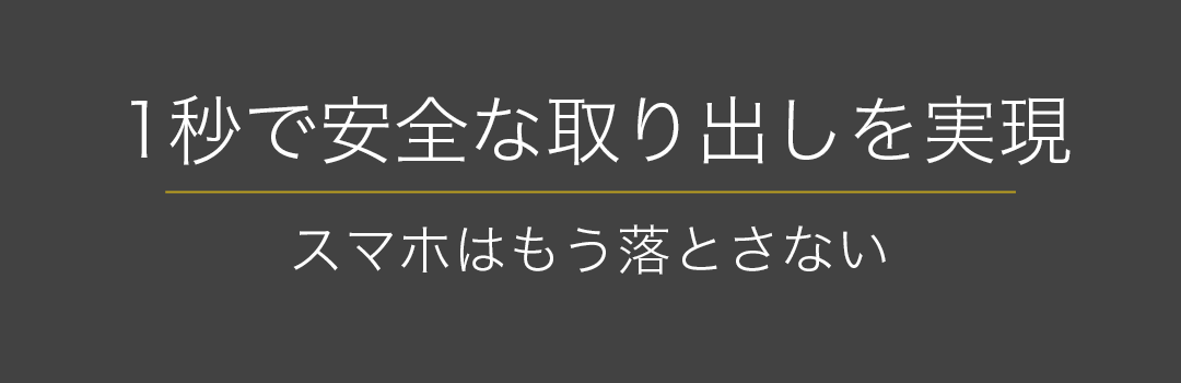 大切なスマホの画面が割れてしまうのは悲しいですよね。SYANTOなら、指をサッと入れることでスマホの確実な取り出し・収納体験を提供します。