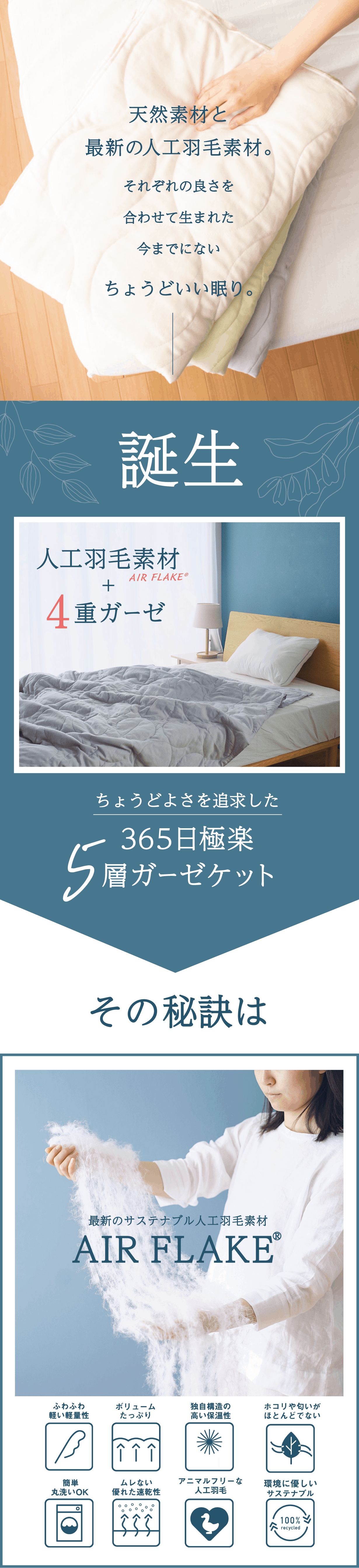 ちょうどよさを追求した、365日極楽5層ガーゼケット