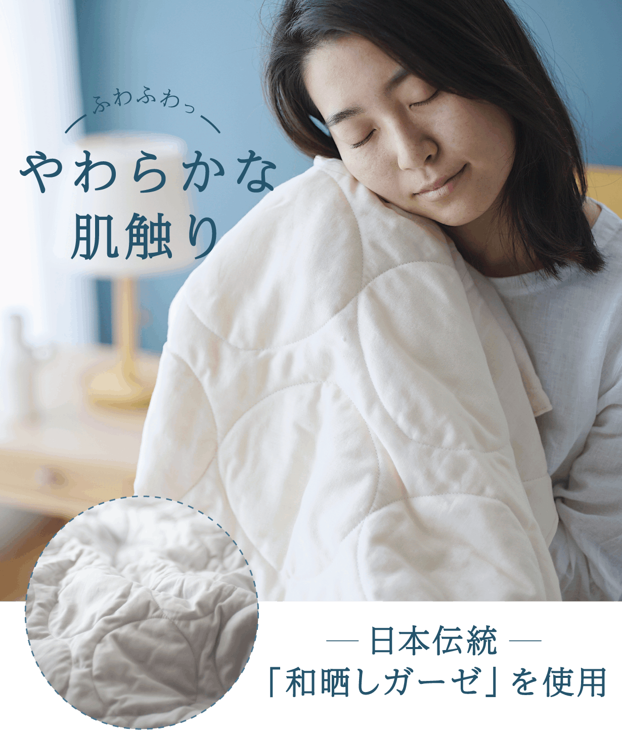 外生地には、やわらかな肌さわりの天然素材「和晒ガーゼ」を使用しています。