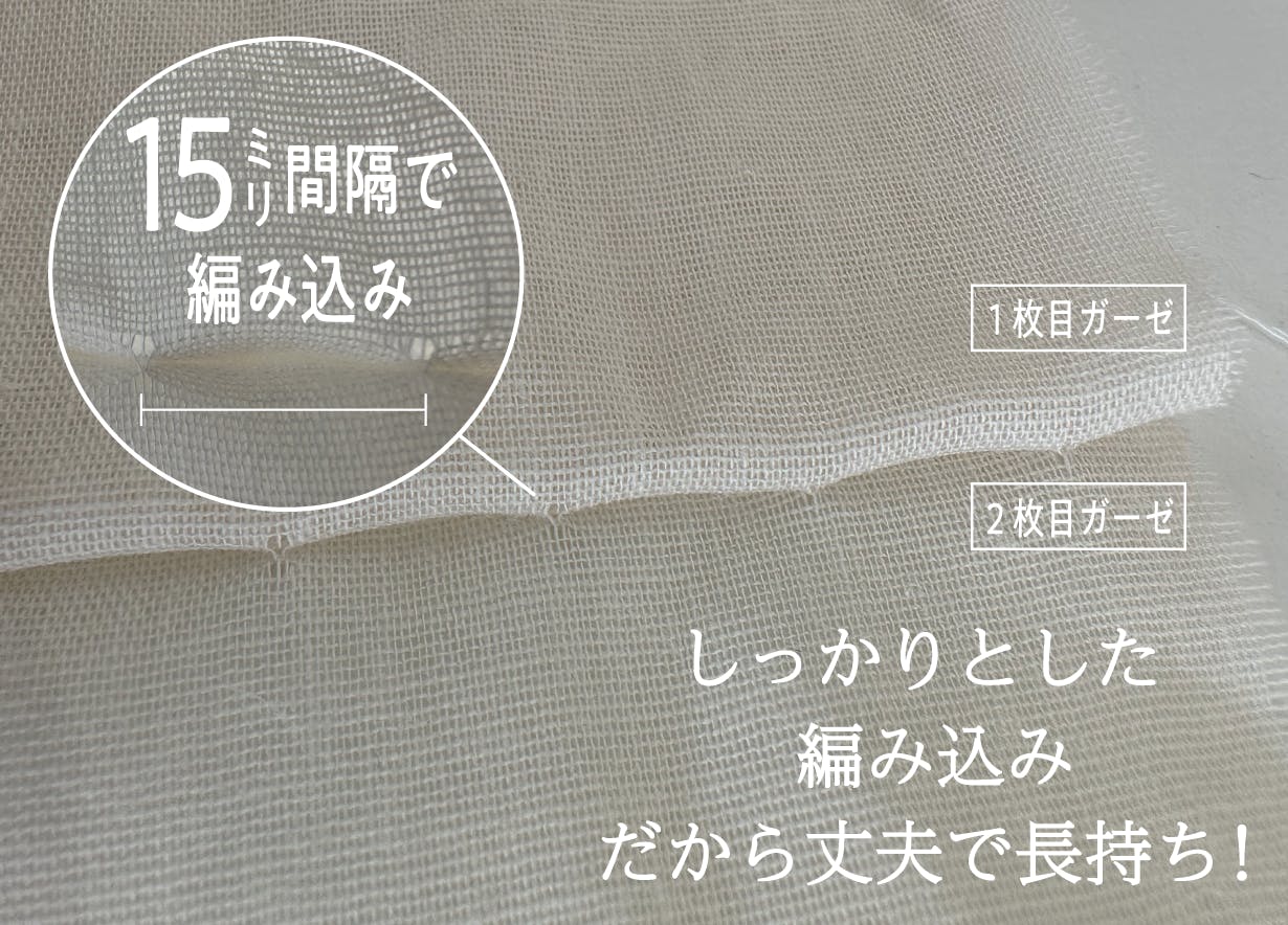 約15mm立法間隔にガーゼとガーゼを編み込んだ、とても丈夫で、高級なガーゼを使用してます。