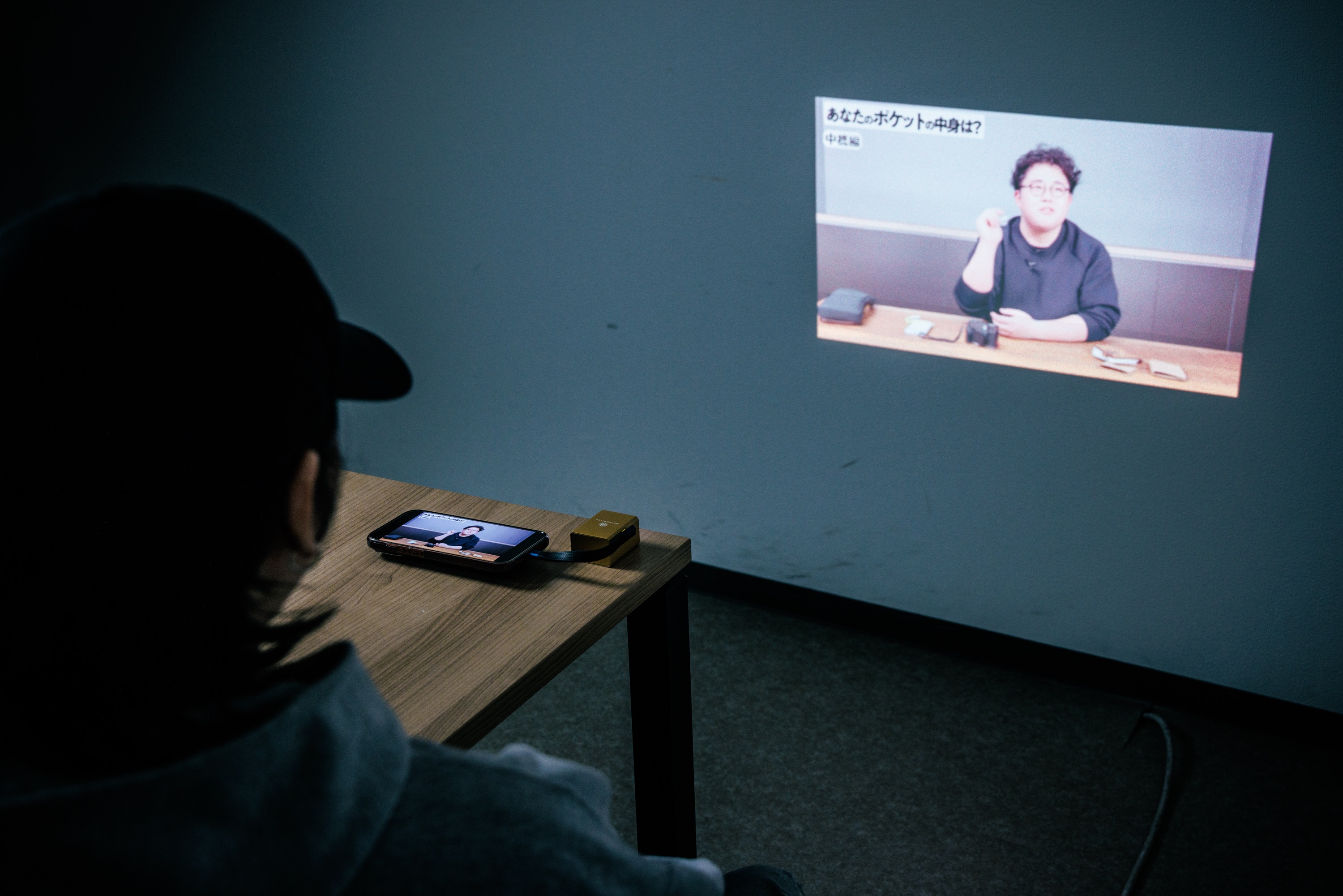USB-C端子が1つにレンズが1つという、究極にシンプルな構成です。スマートフォンやタブレット、PCとUSB-Cケーブルで接続するだけで、デバイス上の画面がそのまま投影されます。