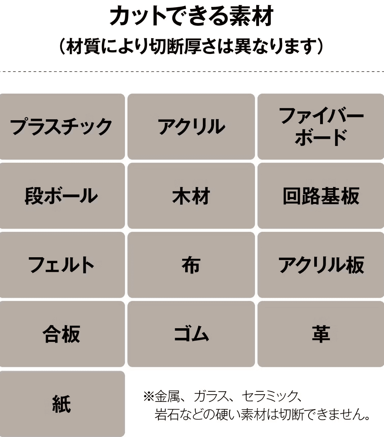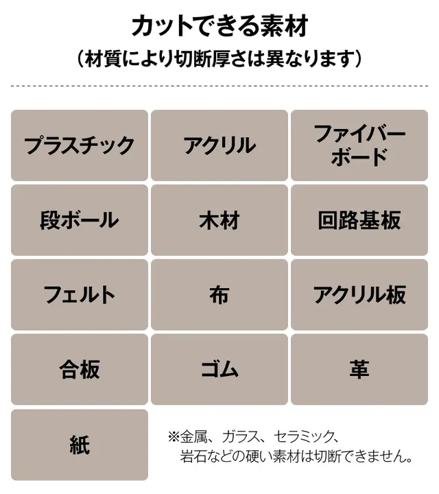 A: 超音波が刃を急速に振動させることで、固い素材、厚い素材を切断できます。刃が素材に触れると振動により刃がノコギリのように作用。力を入れることなく切断します。
