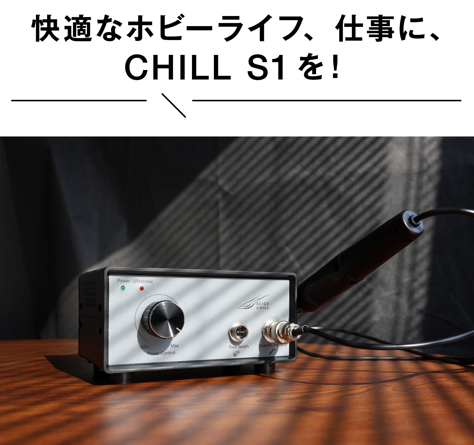 SLICE CHILL CHILL S1は、使いやすさとカット性能を追求して生まれた超音波カッターです。