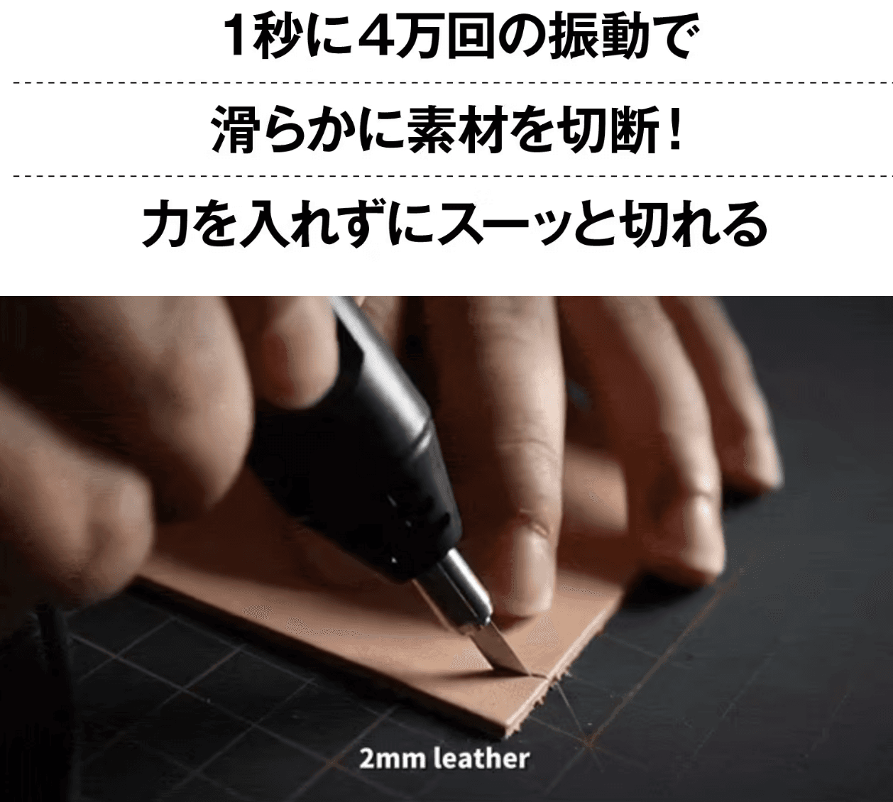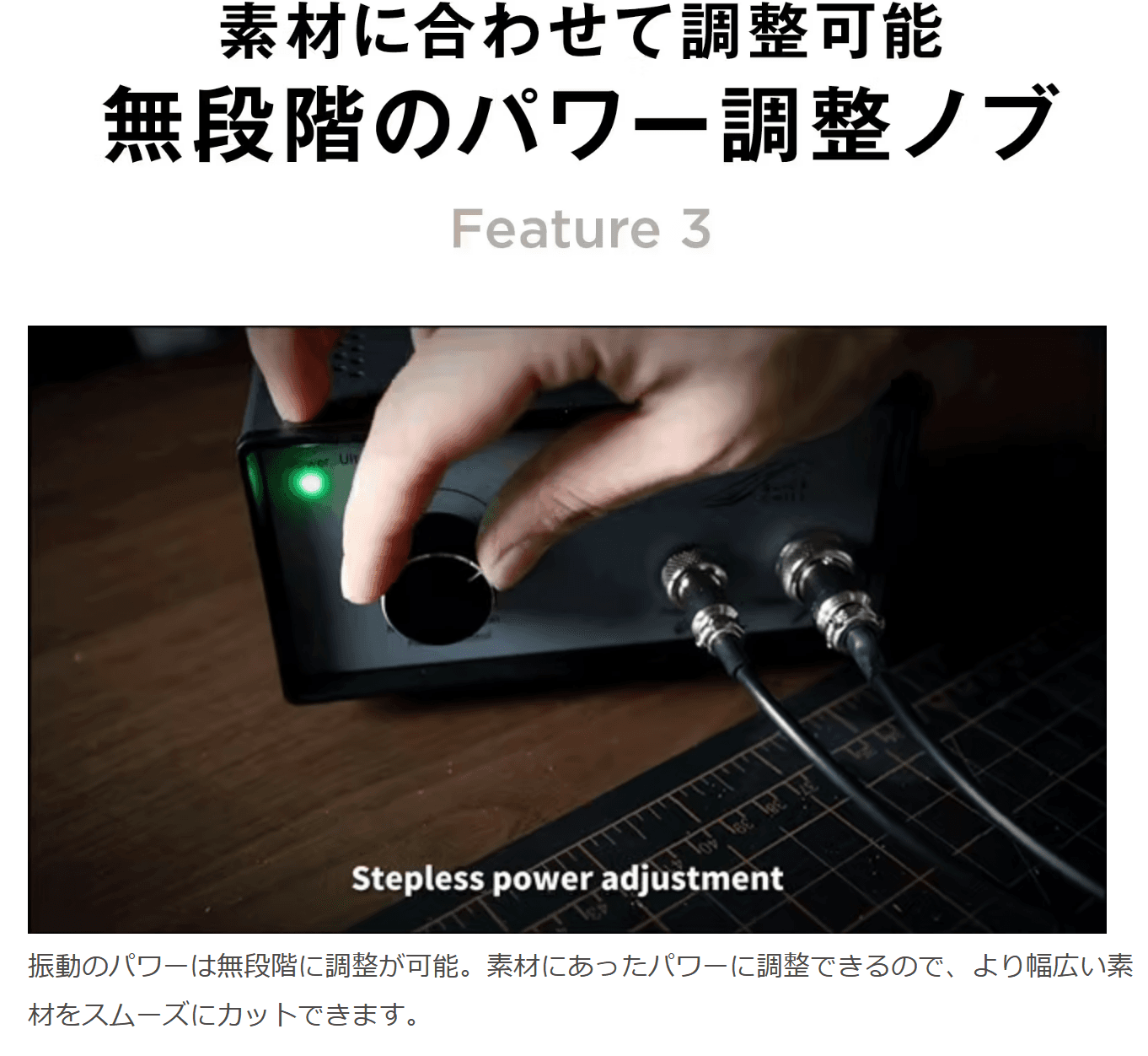 振動のパワーは無段階に調整が可能。素材にあったパワーに調整できるので、より幅広い素材をスムーズにカットできます。