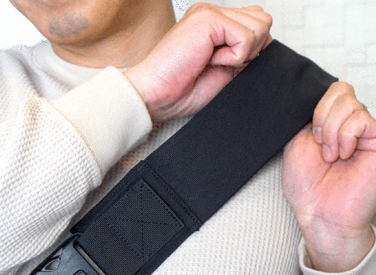 ・必ず輪をかけてのご使用をお願い致します。また、輪がねじれているとベルトの調節がしにくくなってしまう為、ご注意下さい。