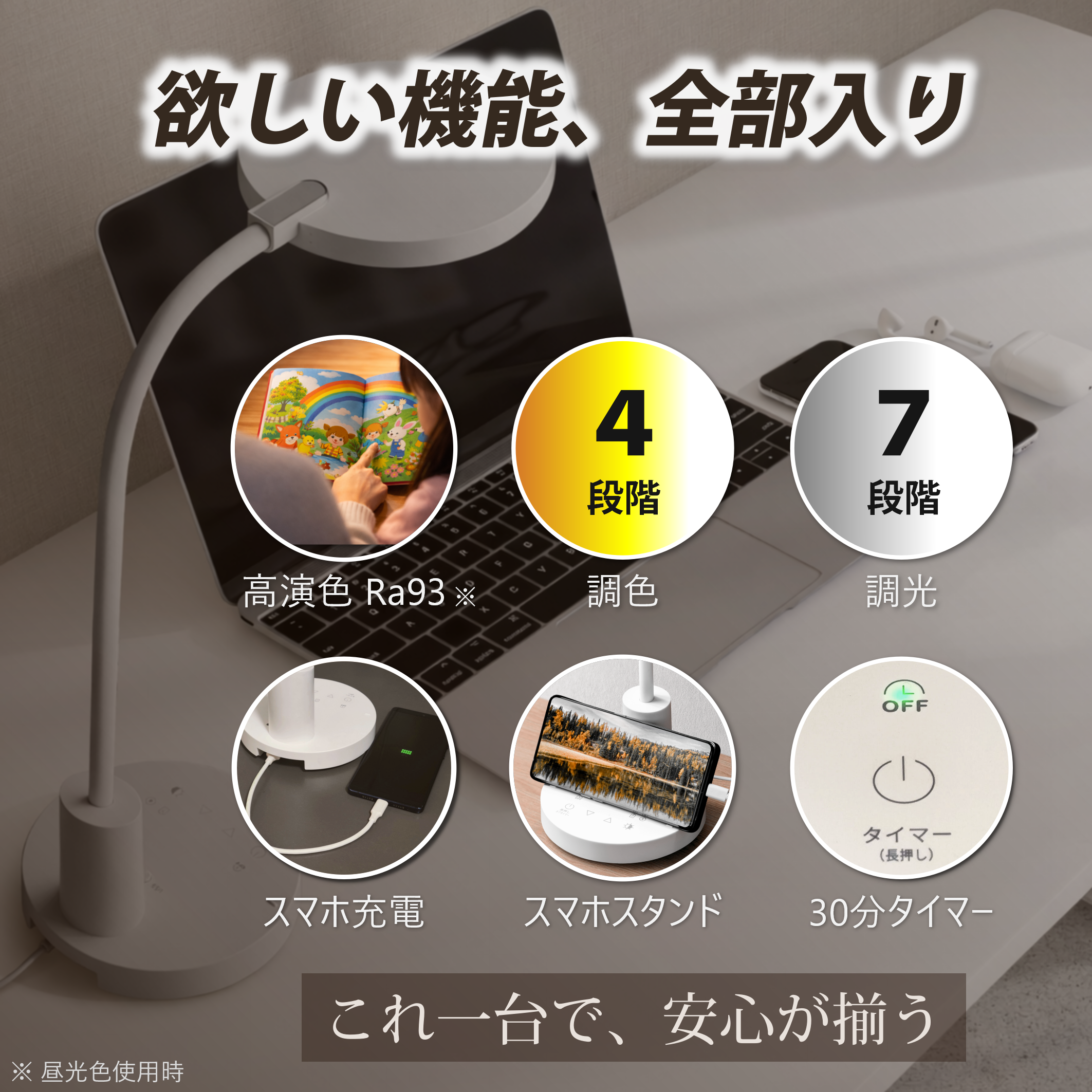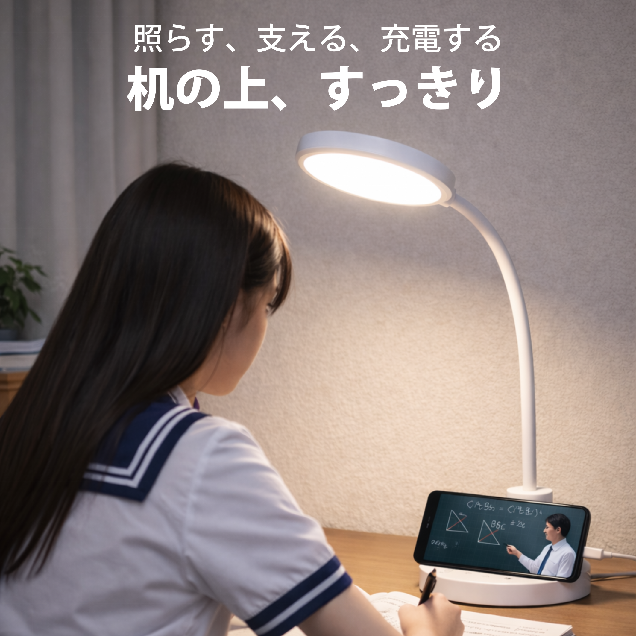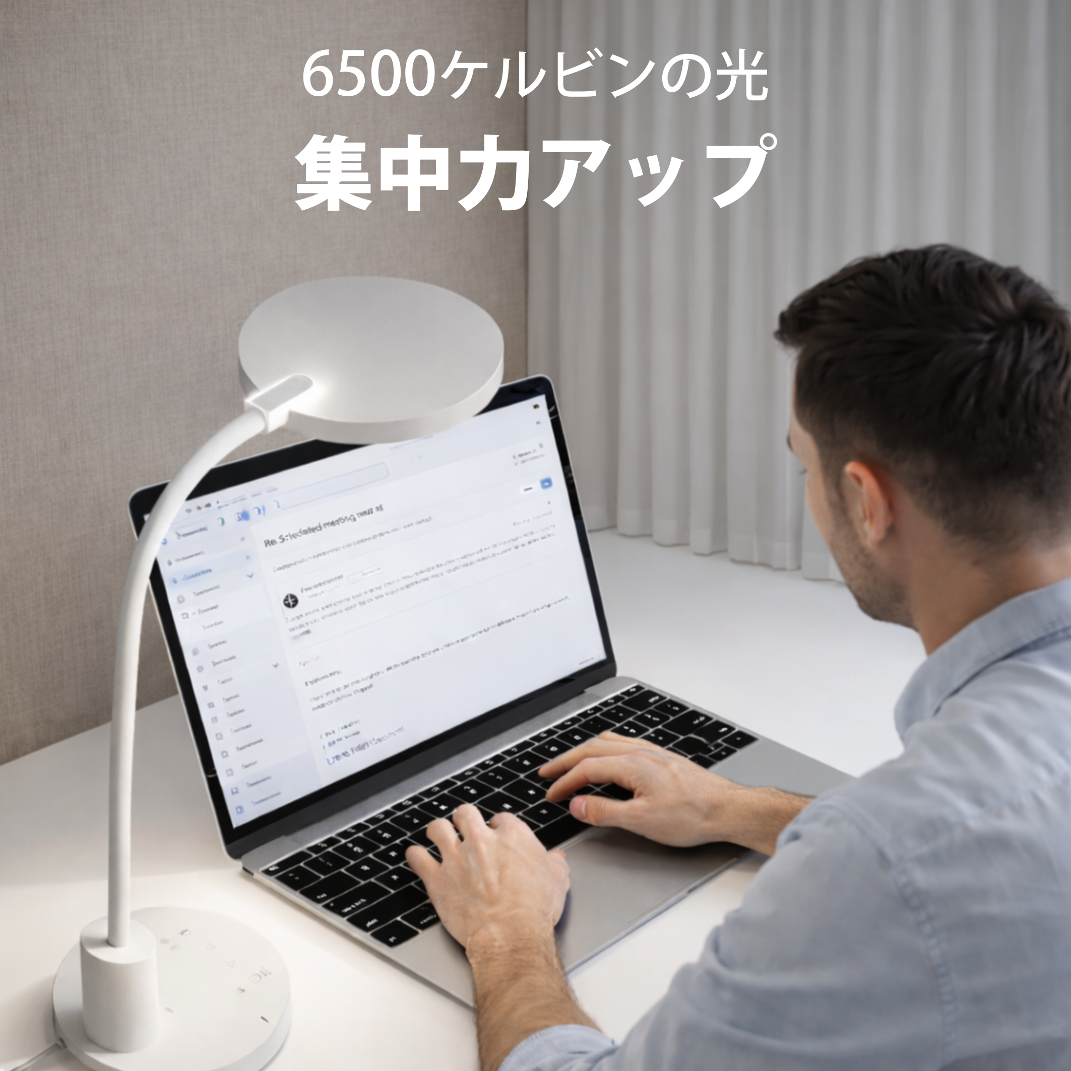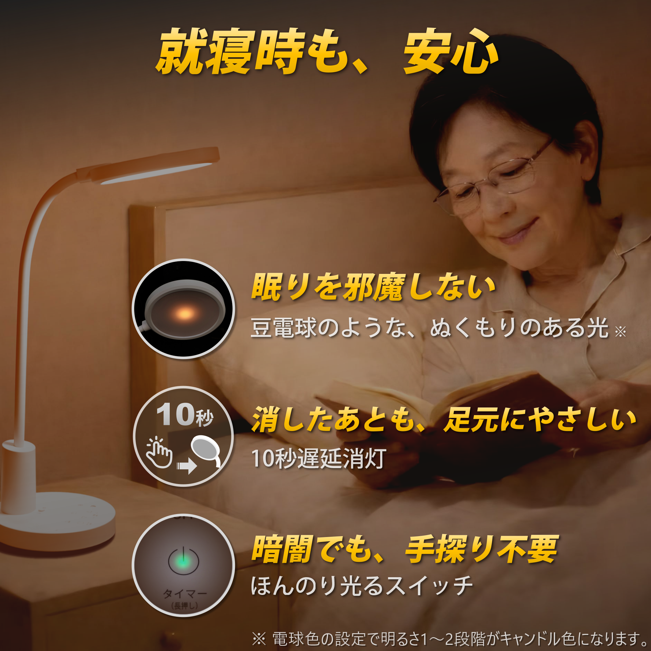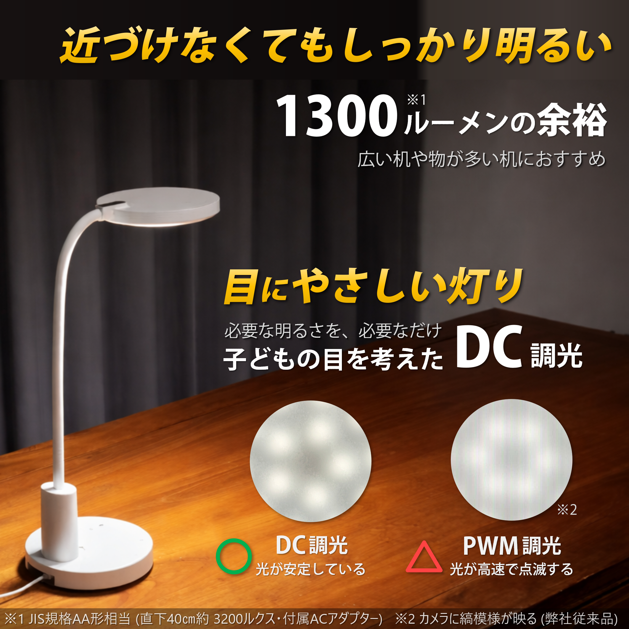 二刀流デスクライトは、ふだんは目にやさしい高品質なデスクライトとして、そして非常時には、家族のそばを静かに照らす「安心のあかり」として寄り添います。