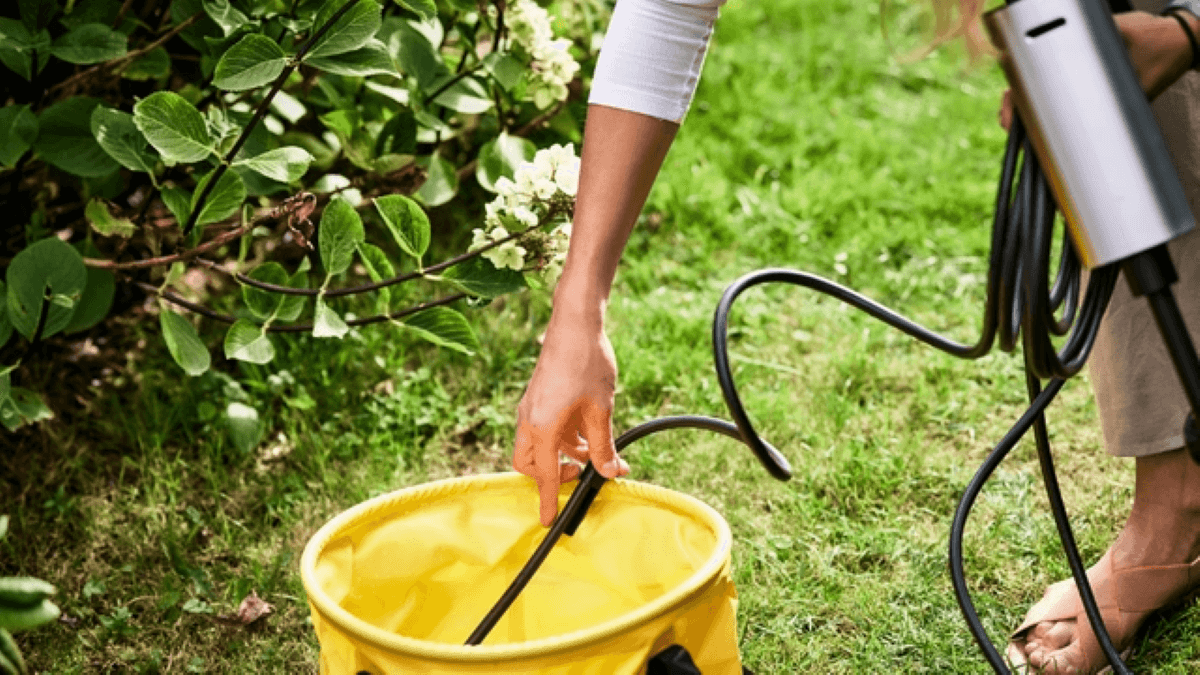 足元にバケツを置いて使用するホースには使いやすい工夫がたくさん施されています。