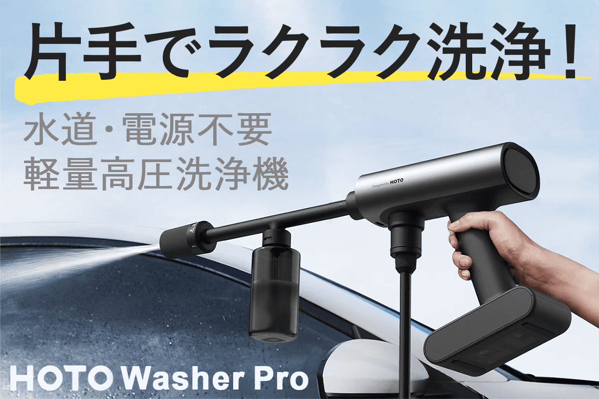 HOTO Washer Proは軽量コンパクト設計、パワフルなのに簡単操作でスムーズに洗浄できる革新的な高圧洗浄機です!