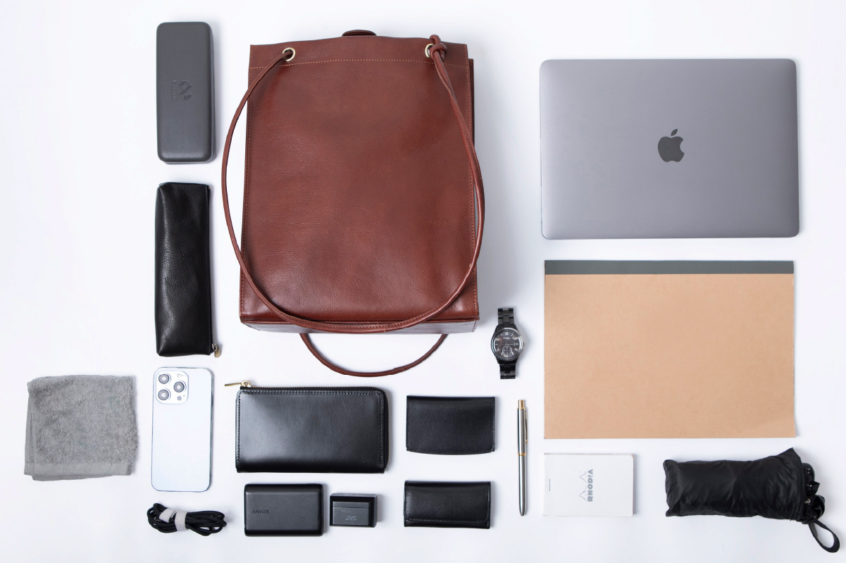サブバッグにもこだわりたい方へ。長財布サイズの折り畳めるレザーミニトート。( 2022年2月 )