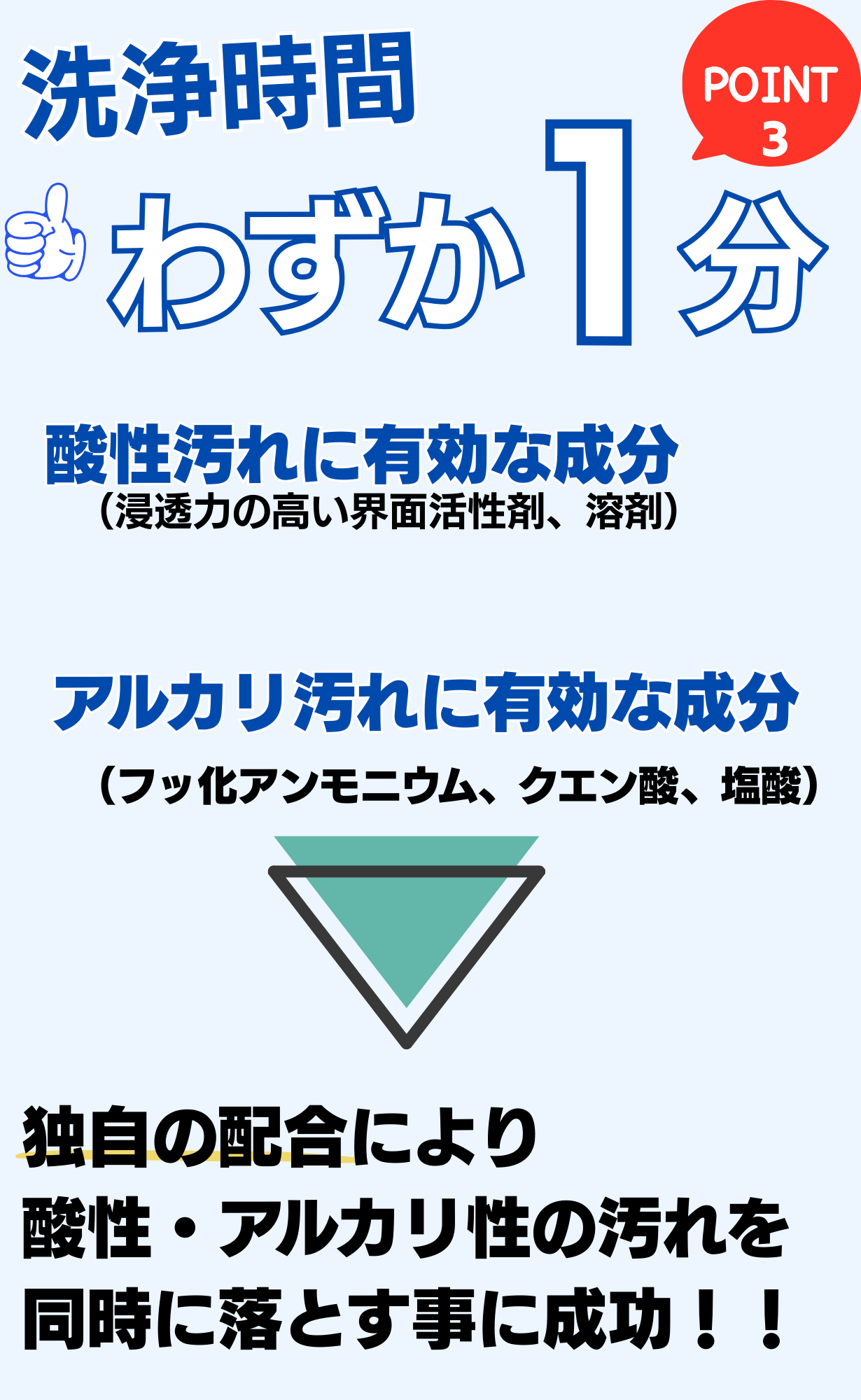 (目安:通常汚れ:1分 しつこい汚れ3分)