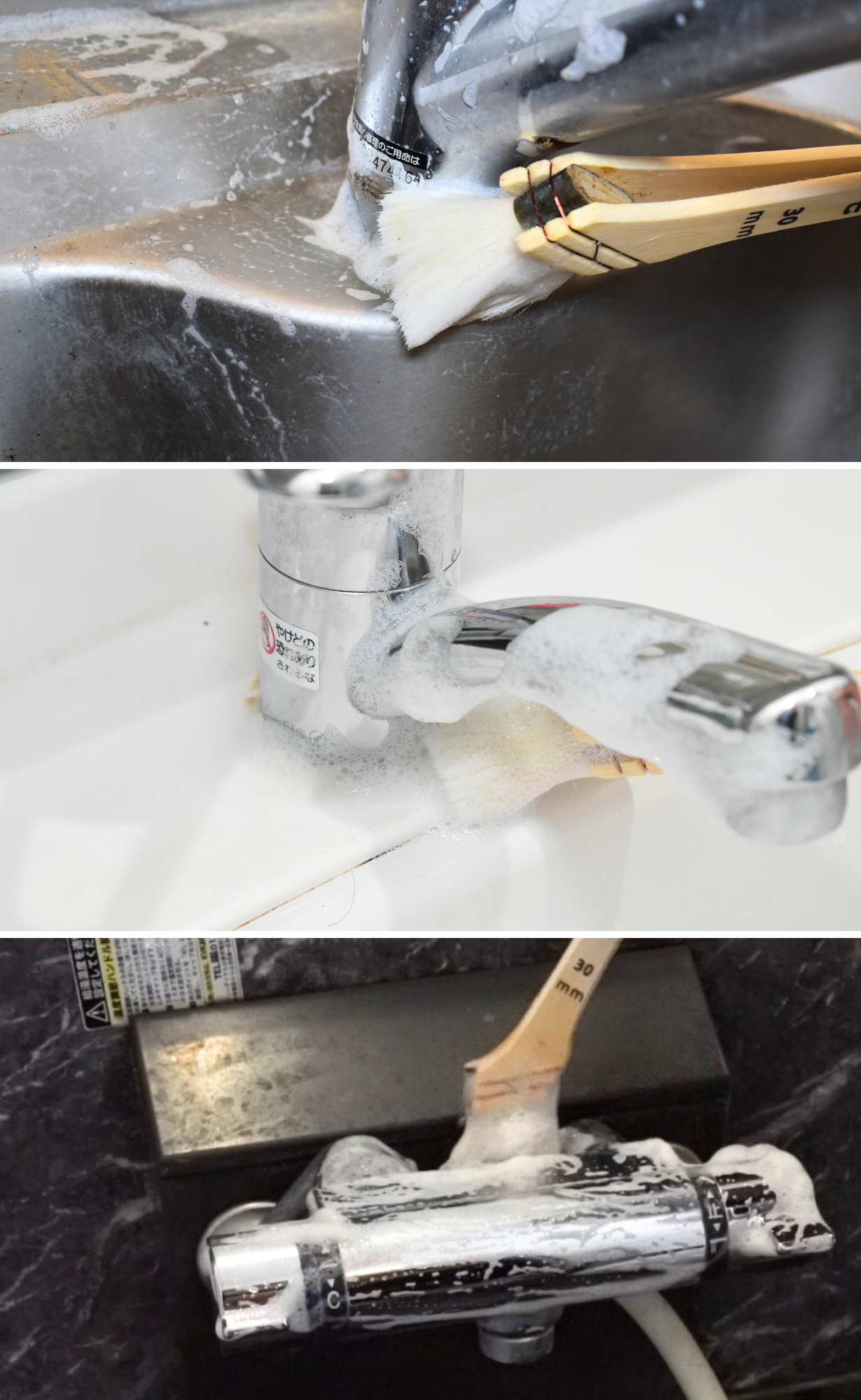 A:蓄積されているしつこい汚れは1~3分を擦り続ける作業を数回繰り返してください