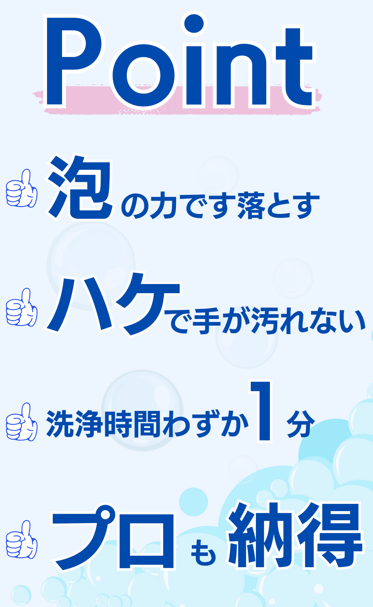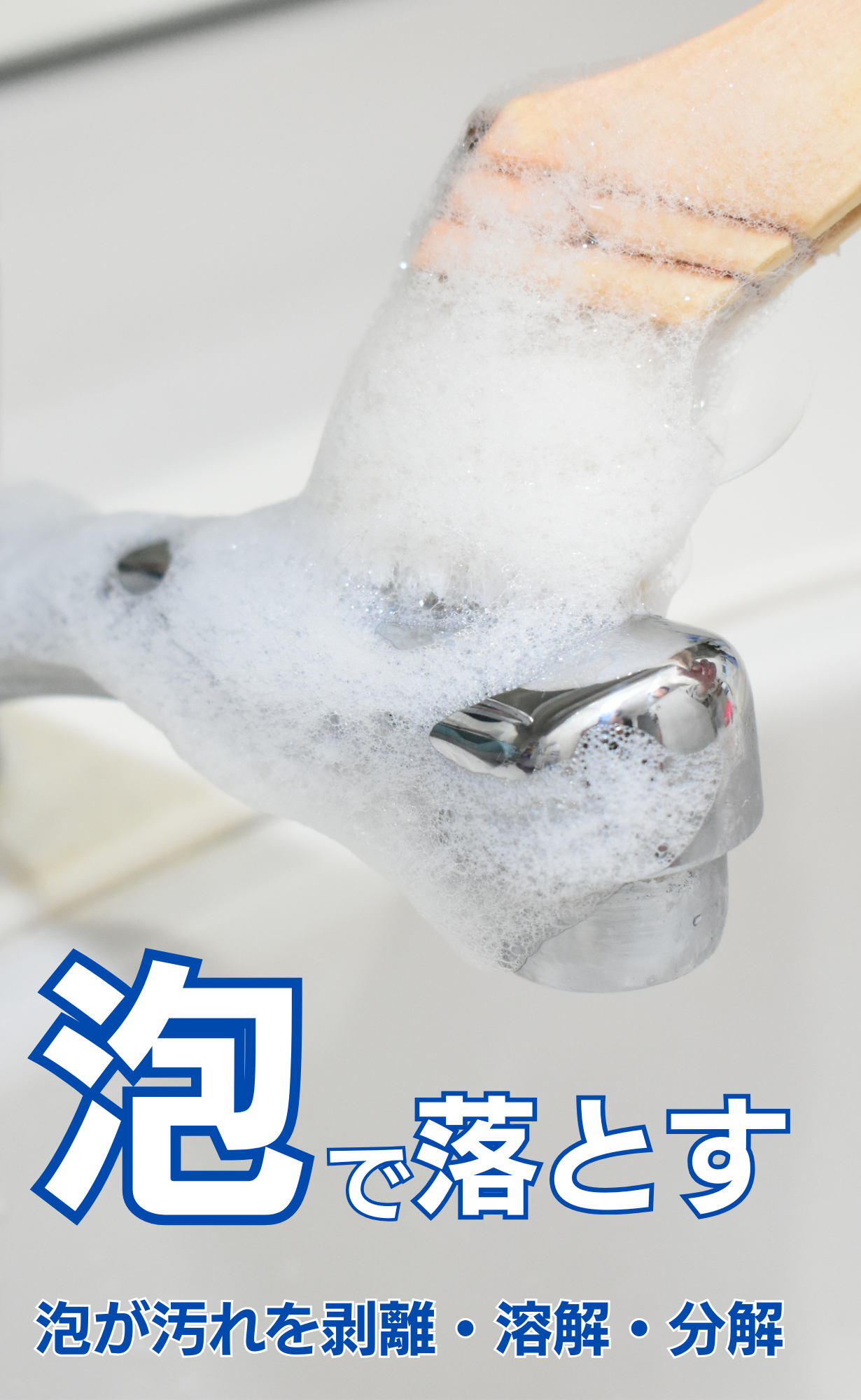 作業時間はわずか1分間、水垢、湯垢、石鹸カス、皮脂汚れをハケで擦るだけ簡単!泡の力で汚れを擦って落とす!バブってSmile 180ml
