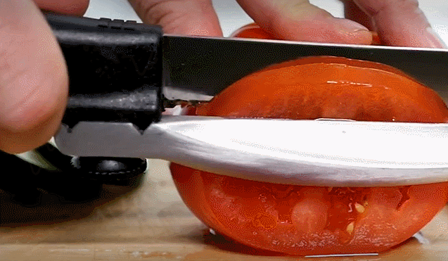 やわらかいトマトも潰れることなく、御覧の通りの切れ味。