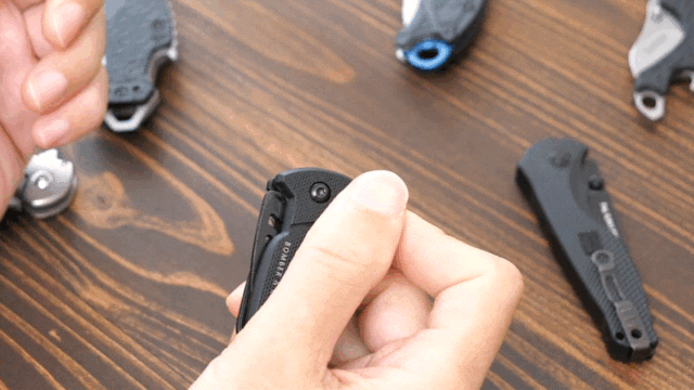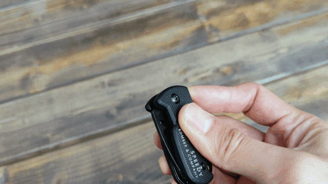 ライナーロック式の折りたたみナイフは、刃を開くとバネのチカラでハンドルの内部にある板(ライナー)が中央へ寄り、ナイフの刃を下支えして刃を閉じない折りたたみナイフのロック方式です。