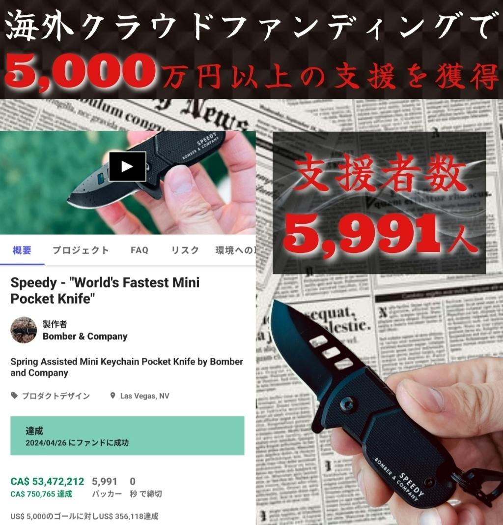 事業内容:BOMBER & COMPANY は、最高の日常用品をお届けすることを使命とする米国を拠点とするアウトドア デザイン会社です。2014 年に最初の製品を発表して7 回のキャンペーンが成功した後、当社は初のスプリング式コンパクトナイフ(SPEEDY)を発表できることを非常に誇りに思っています。