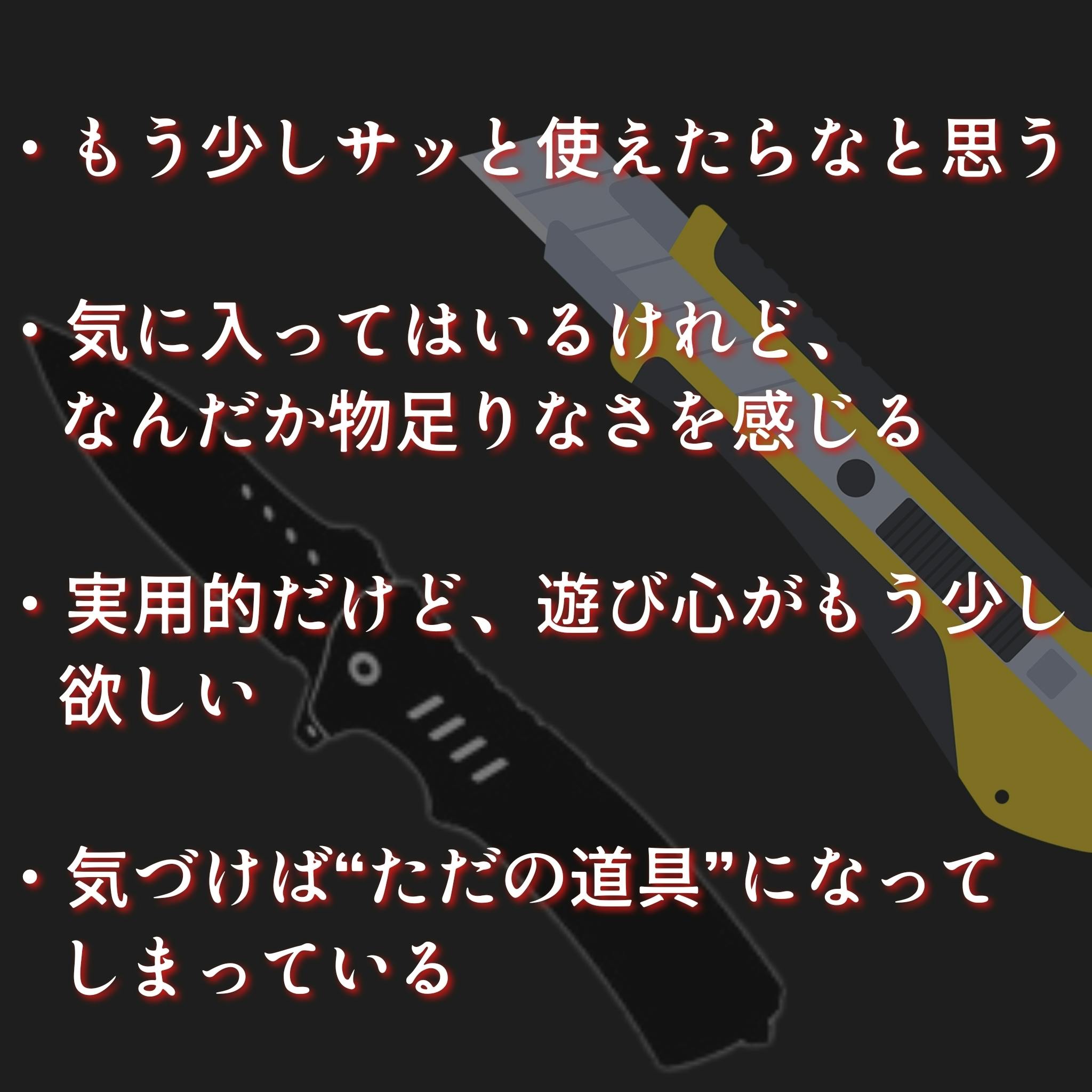 ブレードの形状、ハンドルのシルエット、細部の仕上げまでこだわったデザインは、“ただの道具”ではなく“持ちたくなるギア”に。