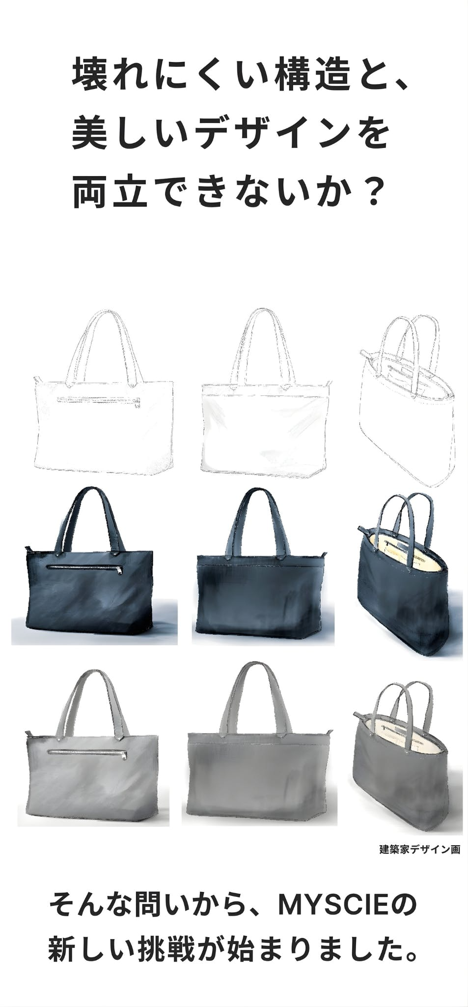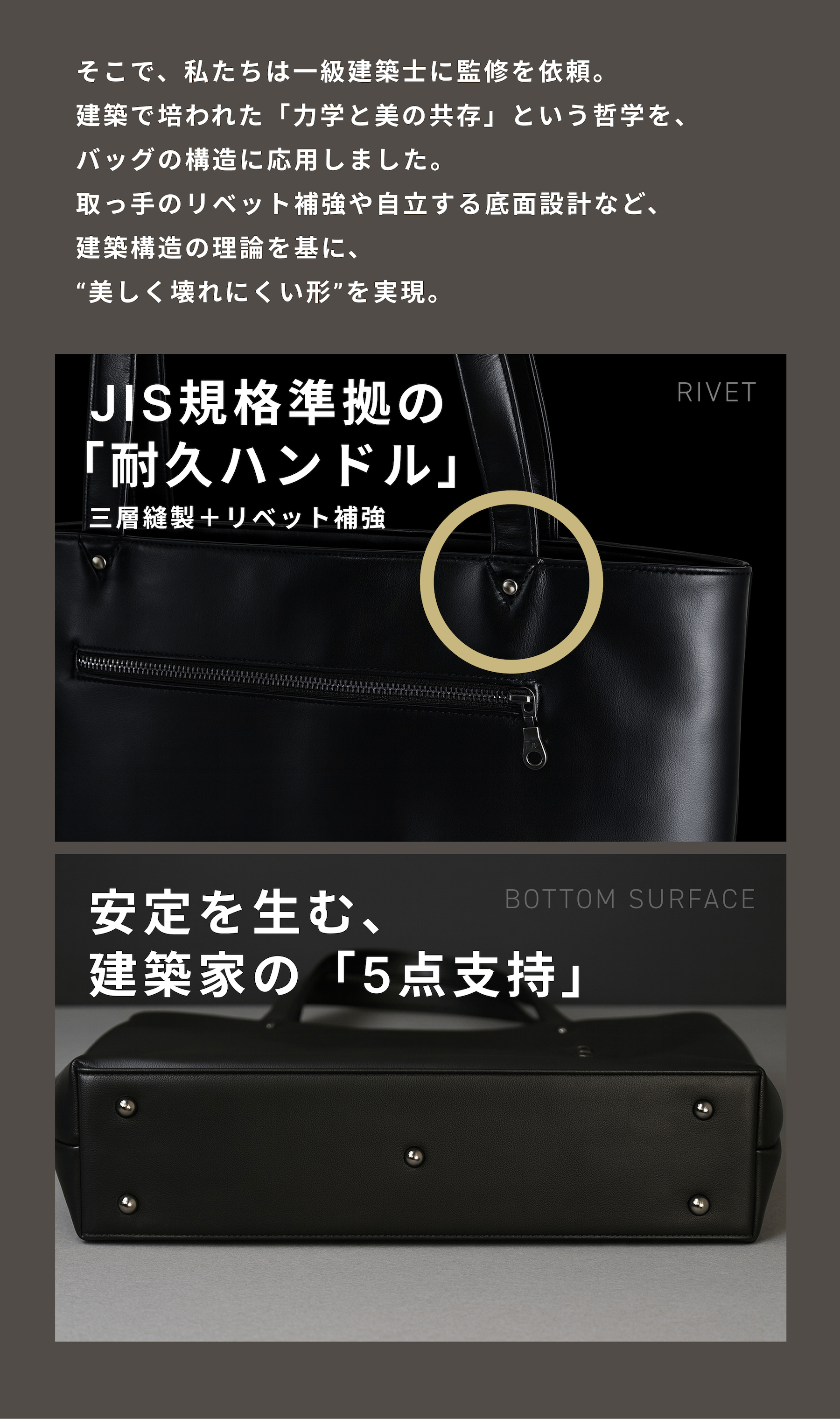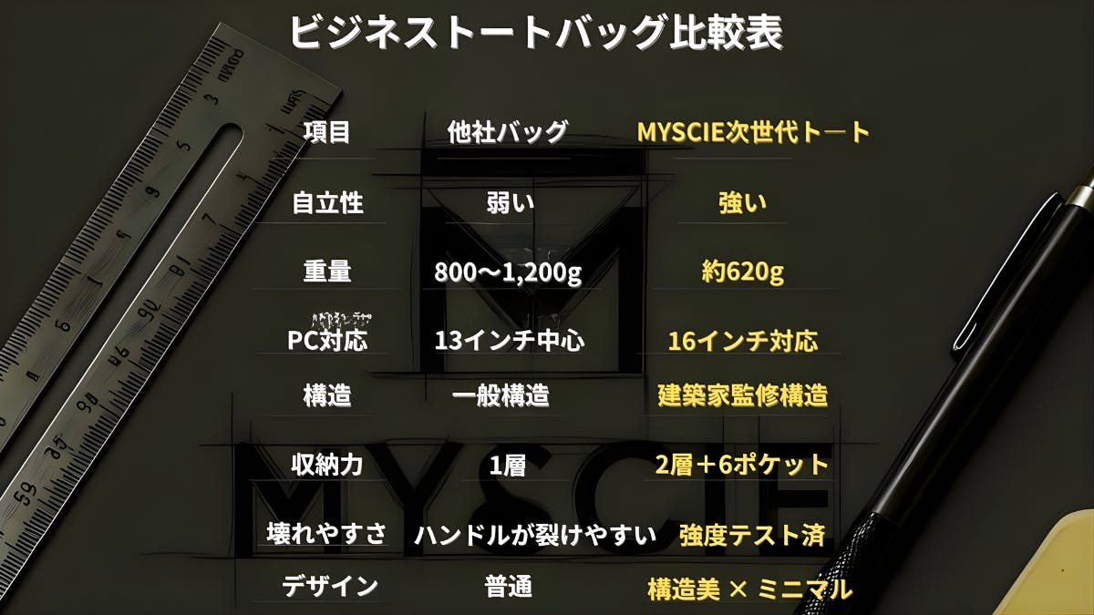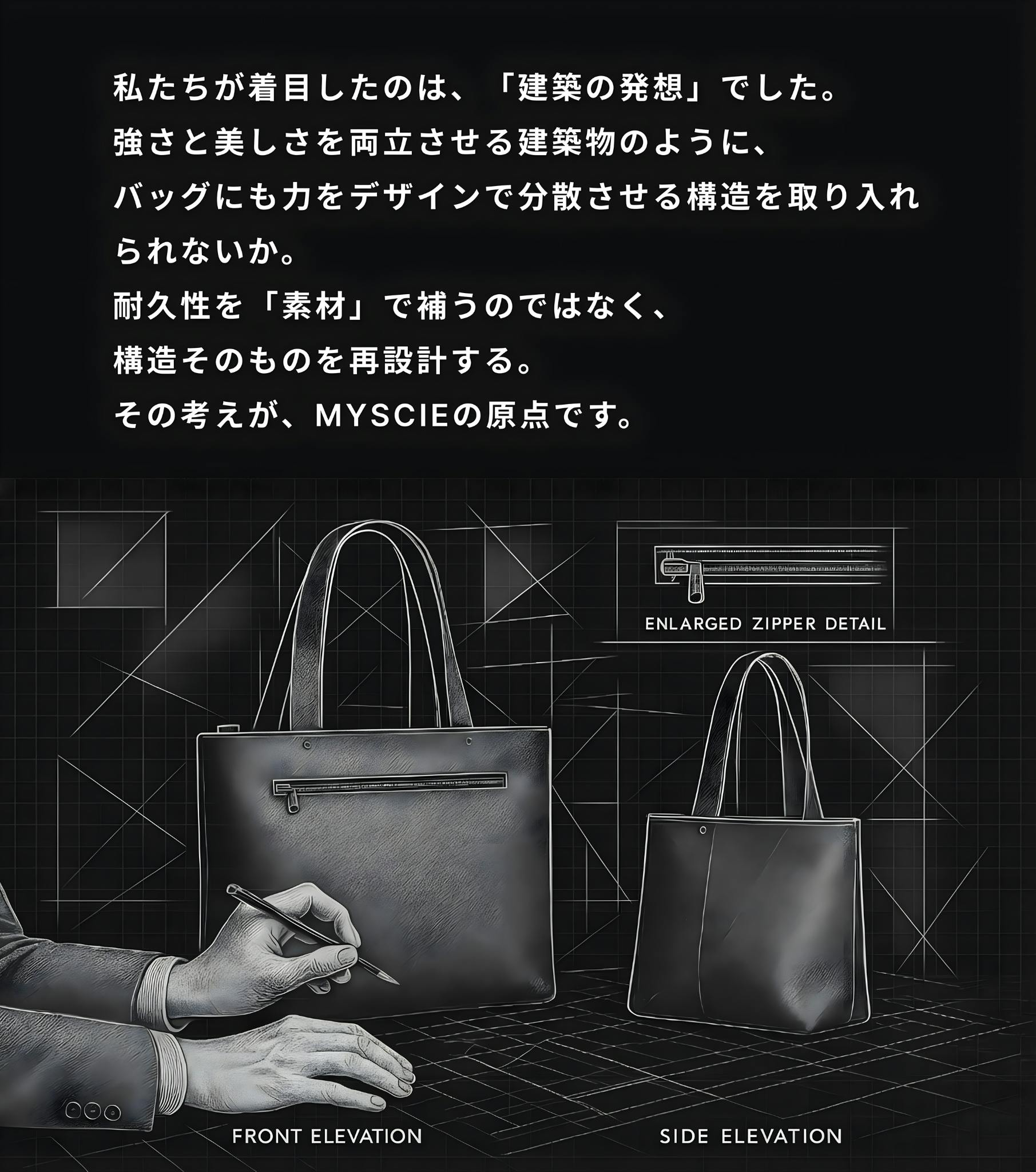 私たちは「デザインと構造の両立」という新しい価値を届けたいと考えています。壊れにくい“構造美”を追求したこのトートが、毎日の通勤や出張、そして人生のさまざまな場面で、長く寄り添う相棒になることを願っています。